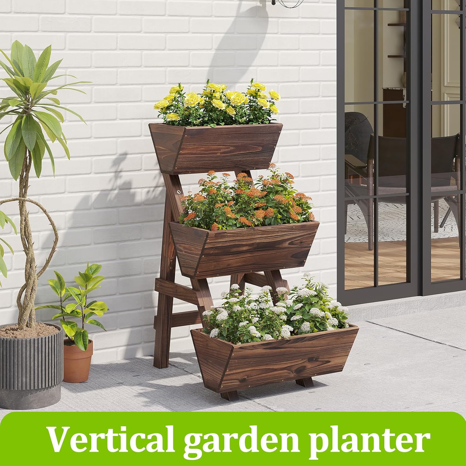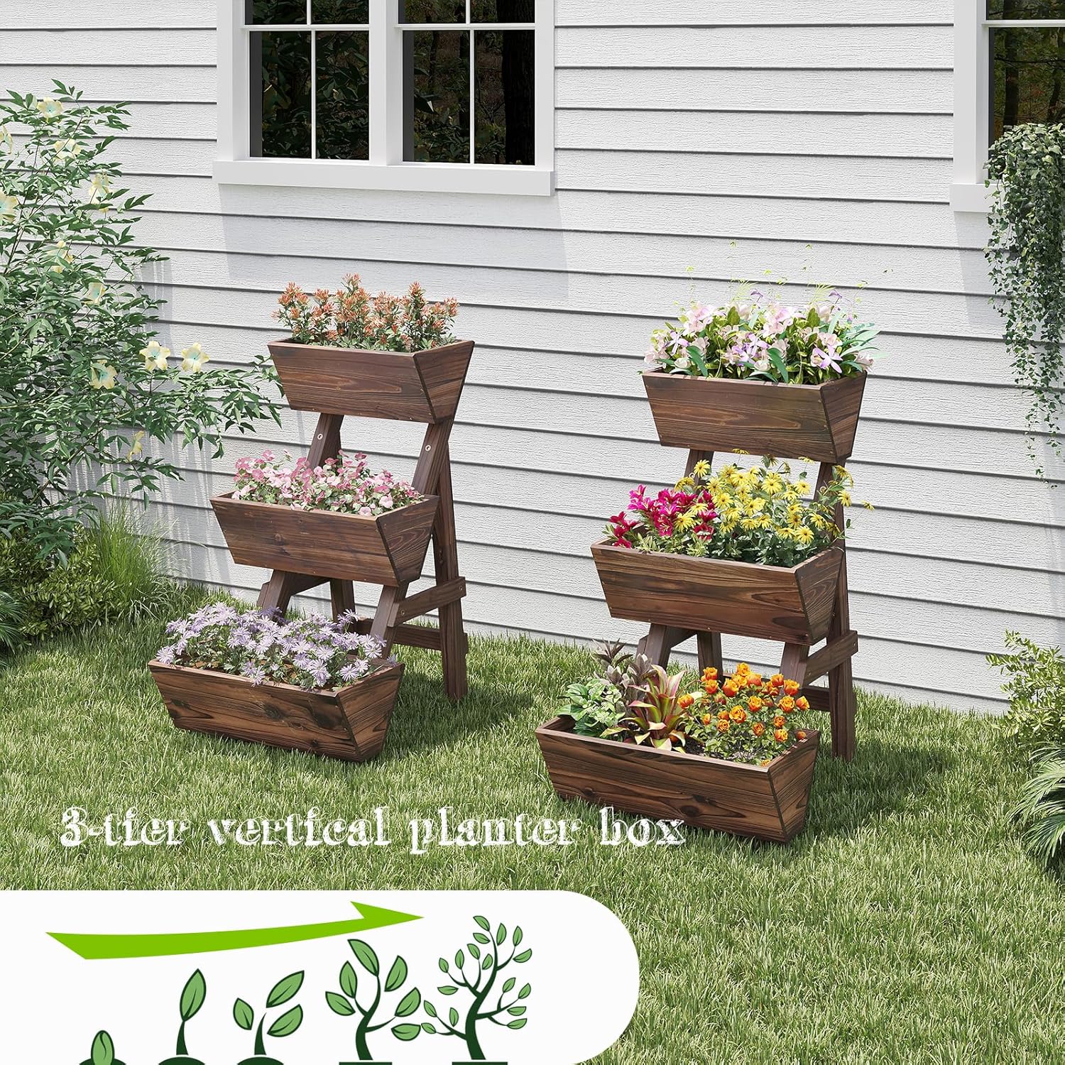 3-Tiers Wooden Raised Garden Bed Tiered Planter Box Vertical Garden Planter Wood Plant Stand for Patio, Balcony, Freestanding (Carbonized S)