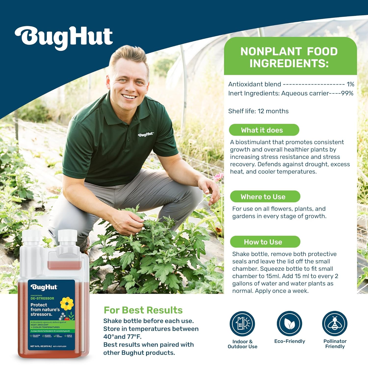 - Versatile Use: Ideal for both indoor and outdoor plants, BugHut De-Stressor is ideal for vegetables, herbs, flowers, succulents, and houseplants in every climate.