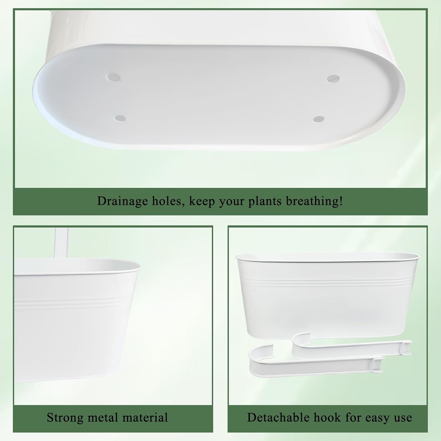 Hanging Planters for Outdoor Plants, 17" Railing Planter Pots, Metal Fence Flower Pot for Porch Balcony with Detachable Hook (White, Pack of 2)