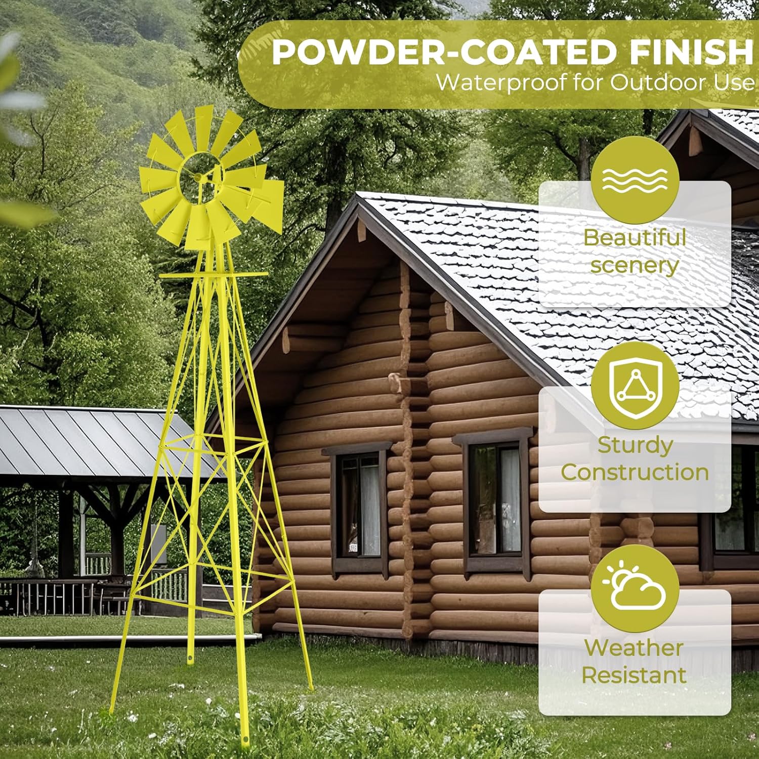 - 【DURABLE USE】No need electric. This windmill for yard is turned by the wind power. Uses roller bearings to keep windmill blades turning smoothly and quietly with the wind