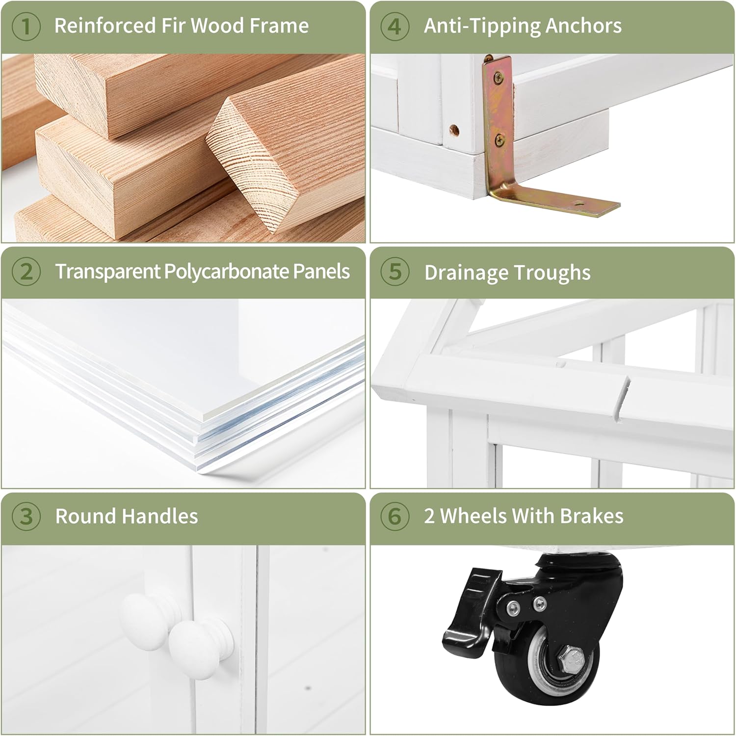 Greenhouse Cold Frames with Wheels - Adjustable Shelves Portable Cold Frame for Balcony/Patio, UV-Resistant Indoor Outdoor Plant Growing Cabinet (Large, Heavy-Duty) (White)