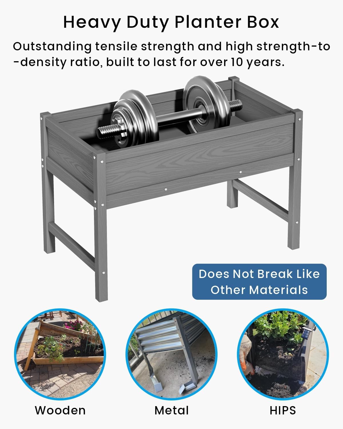 - Long-lasting Planter Box: Thanks to the superior performance of HDPE material in outdoor environments, this outdoor garden box is built to last for over 10 years, no matter the setting or climate.
