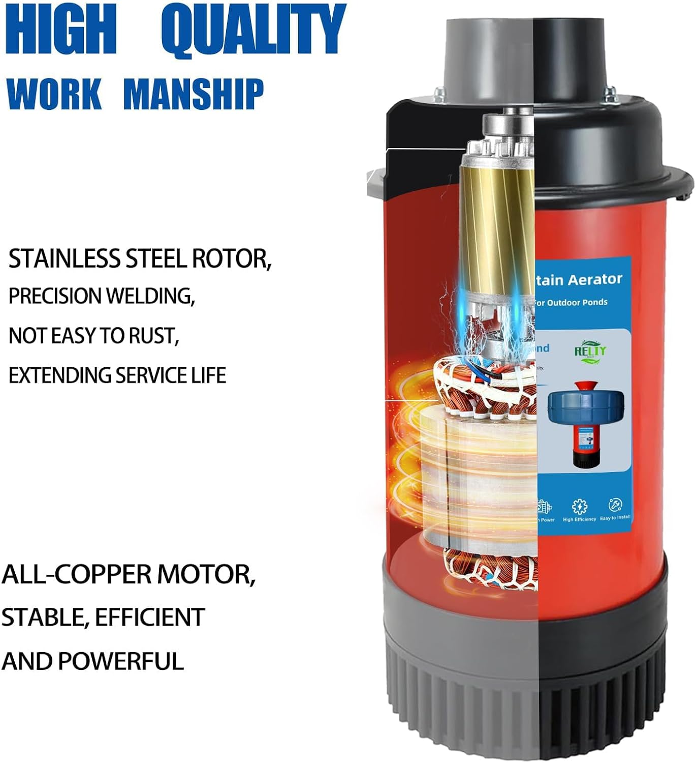 - Wide Range Of Applications: This Pond Fountain Aerator comes with a 12-gauge, 100-foot submersible electric power cord and two 100-foot guide ropes, making it suitable for both small and large ponds and lakes. Whether you have a backyard pond or a large lake, our aerator can enhance the beauty and health of your water feature