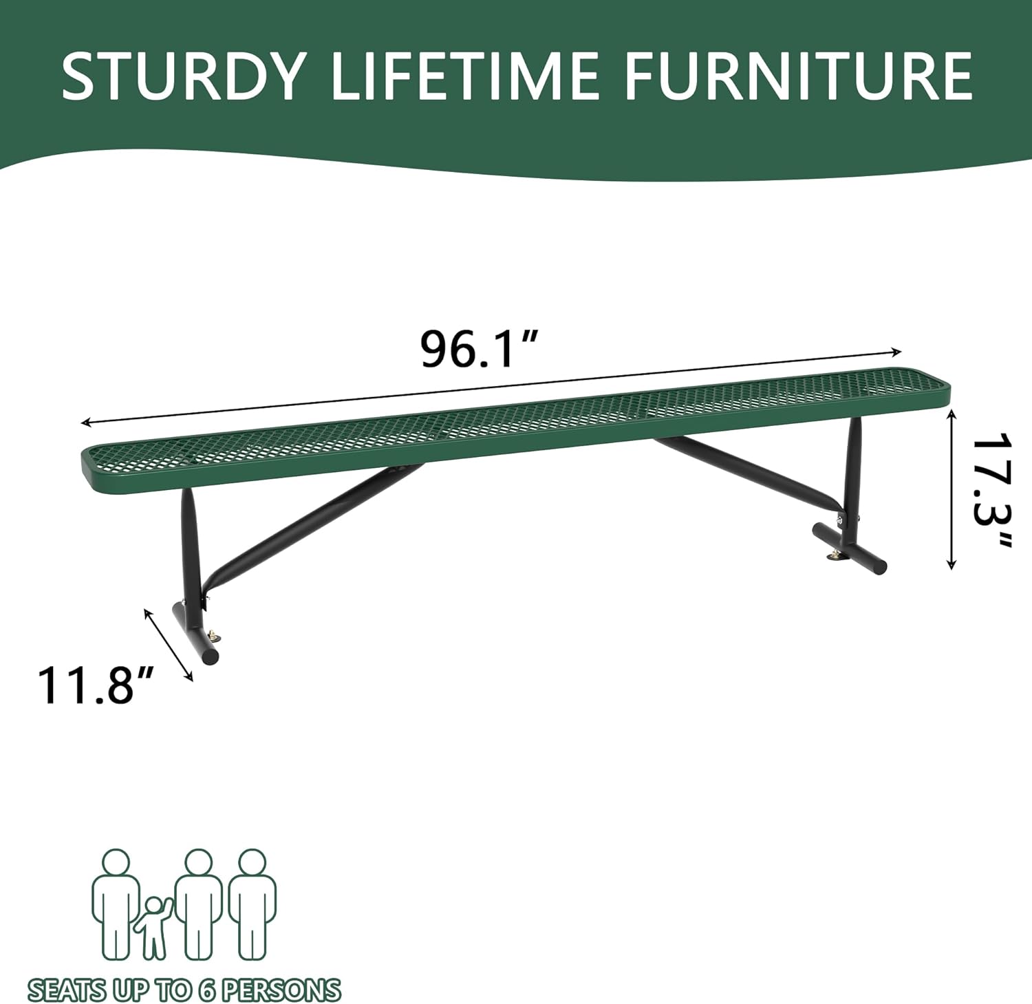 8 Feet Heavy Duty Metal Park Bench for Outside, Outdoor Bench with Portable Frame, Commercial Benches for Shopping Mall, Store, Park, Patio, Deck, Green