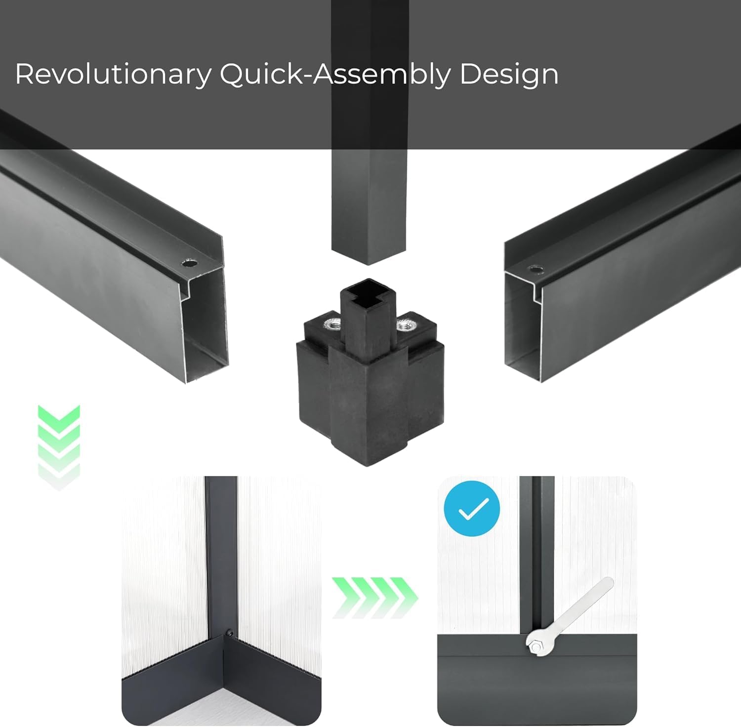 - EASY INSTALLATION: Each of the two packages contains an aluminum alloy frame and PC panels, complete with detailed installation instructions. The greenhouse's frame allows for easy assembly, enabling two DIY enthusiasts to complete the setup in just 3 hours