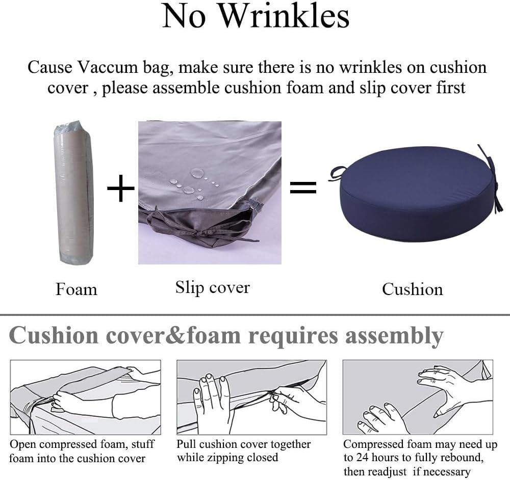 - 【Non-Slip & Back with Ties】These outdoor round chair pads come with Non slip bottom & attached ties to keep them securely fastened to your chairs. Seat cushions for kitchen chairs engineered with high-density foam, they provide the perfect balance of softness and resilience, chair cushions for outdoor furniture foam is fill enough to relieve hip pain. Replacement cushions for outdoor furniture provide sturdy support and won't sink if you sit for a long time