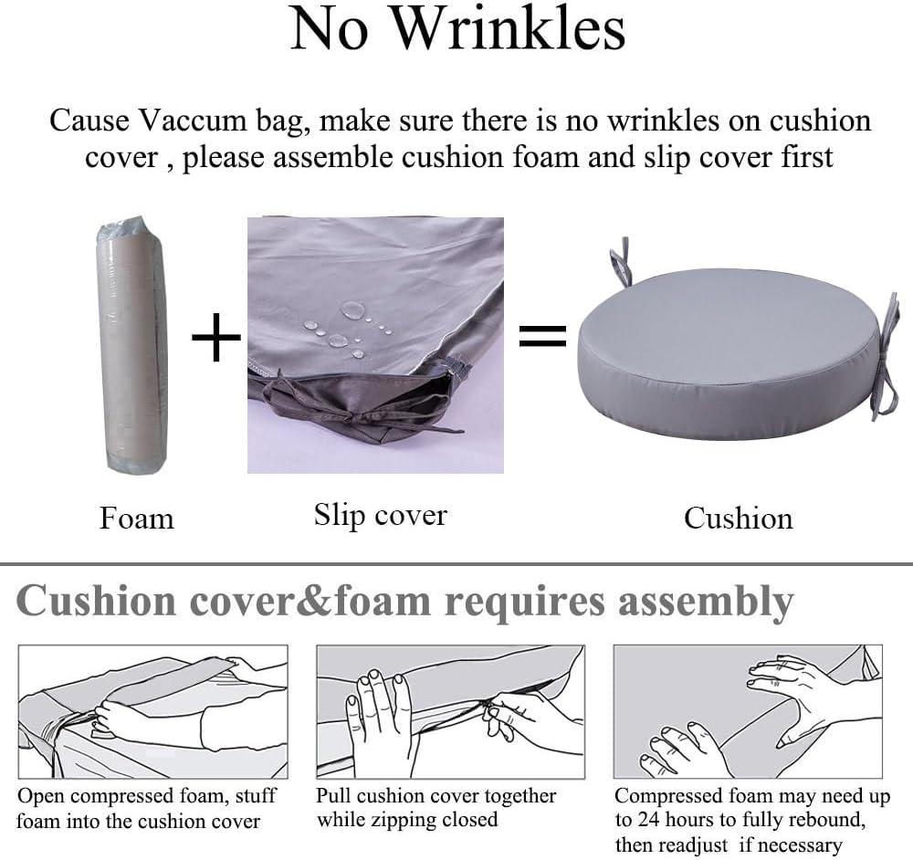 - 【Non-Slip & Back with Ties】These outdoor round chair pads come with Non slip bottom & attached ties to keep them securely fastened to your chairs. Seat cushions for kitchen chairs engineered with high-density foam, they provide the perfect balance of softness and resilience, chair cushions for outdoor furniture foam is fill enough to relieve hip pain. Replacement cushions for outdoor furniture provide sturdy support and won't sink if you sit for a long time