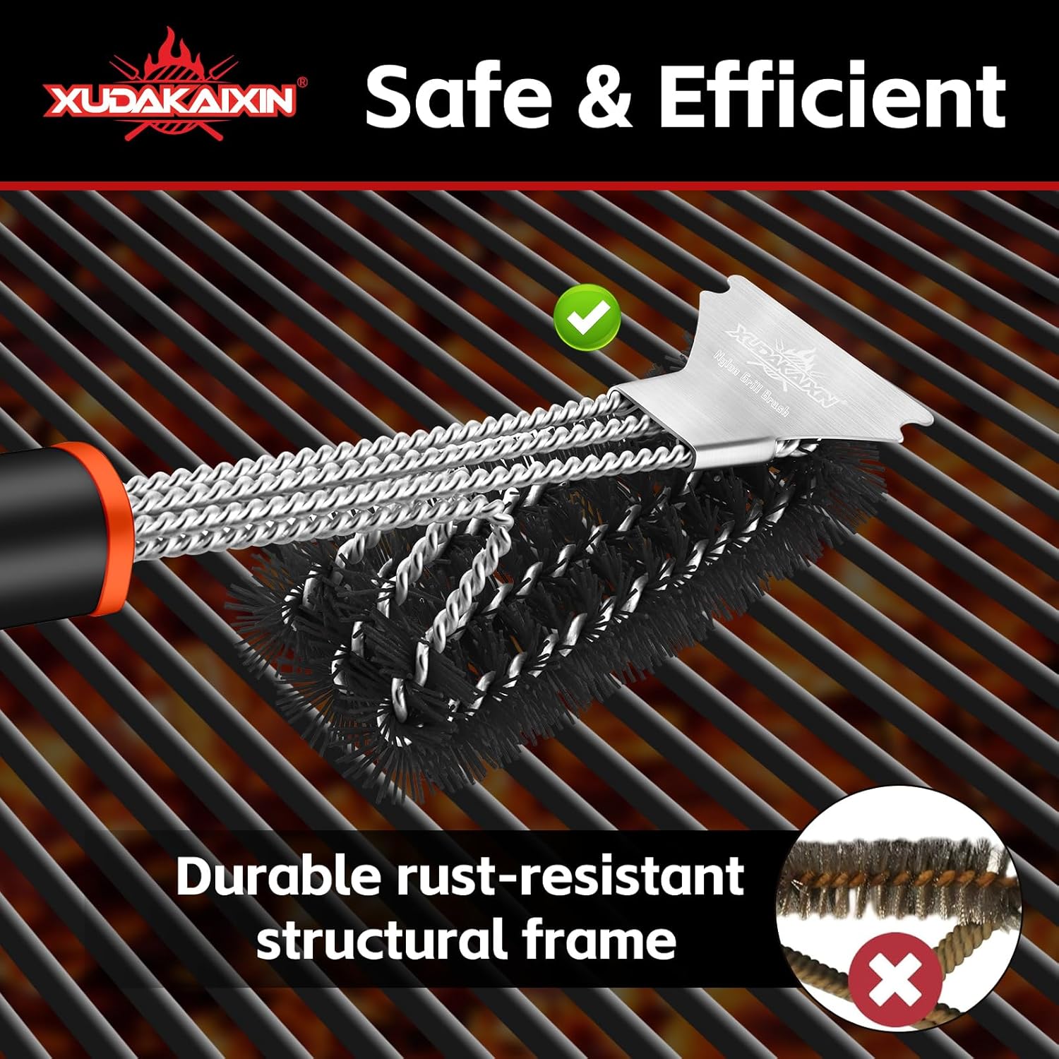 - 【Durable Nylon Bristles Protect Grates】Designed for safe and effective cleaning, this BBQ grill brush has durable, heatproof nylon bristles that won’t scratch your grill grates. A great choice for keeping your grill in pristine condition with regular upkeep