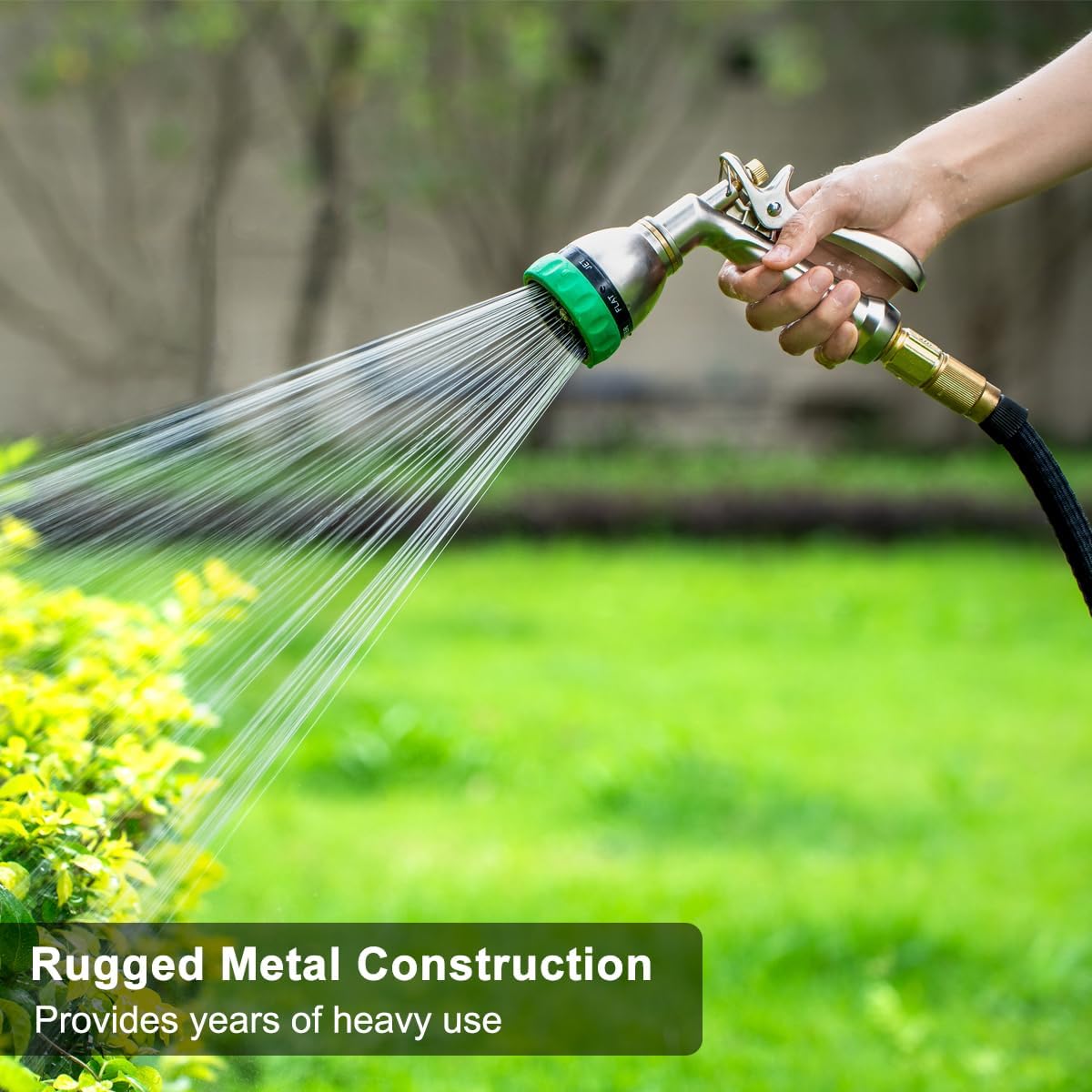 FANHAO Heavy Duty Garden Hose Nozzle, 100% Metal Water Hose Sprayer with 7 Spray Patterns, Ergonomic Rear Trigger, High Pressure Water Nozzle Sprayer for Watering Plants, Washing Car and Pet