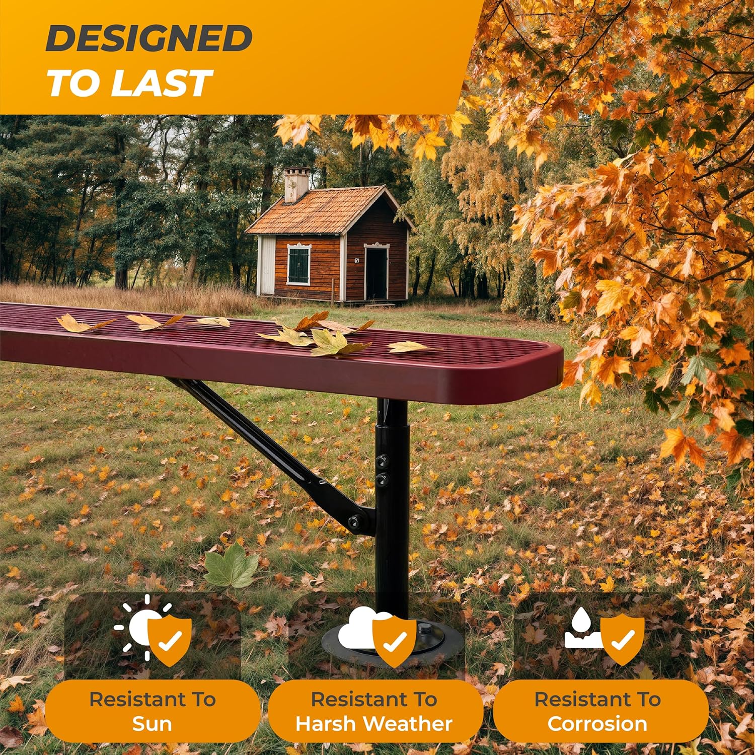 Heavy-Duty Outdoor Metal Bench, Thermoplastic-Coated, Surface, Weatherproof, Commercial-Grade for Parks, Gardens, Patios, Stores & More (8 Ft - Surface, Red)