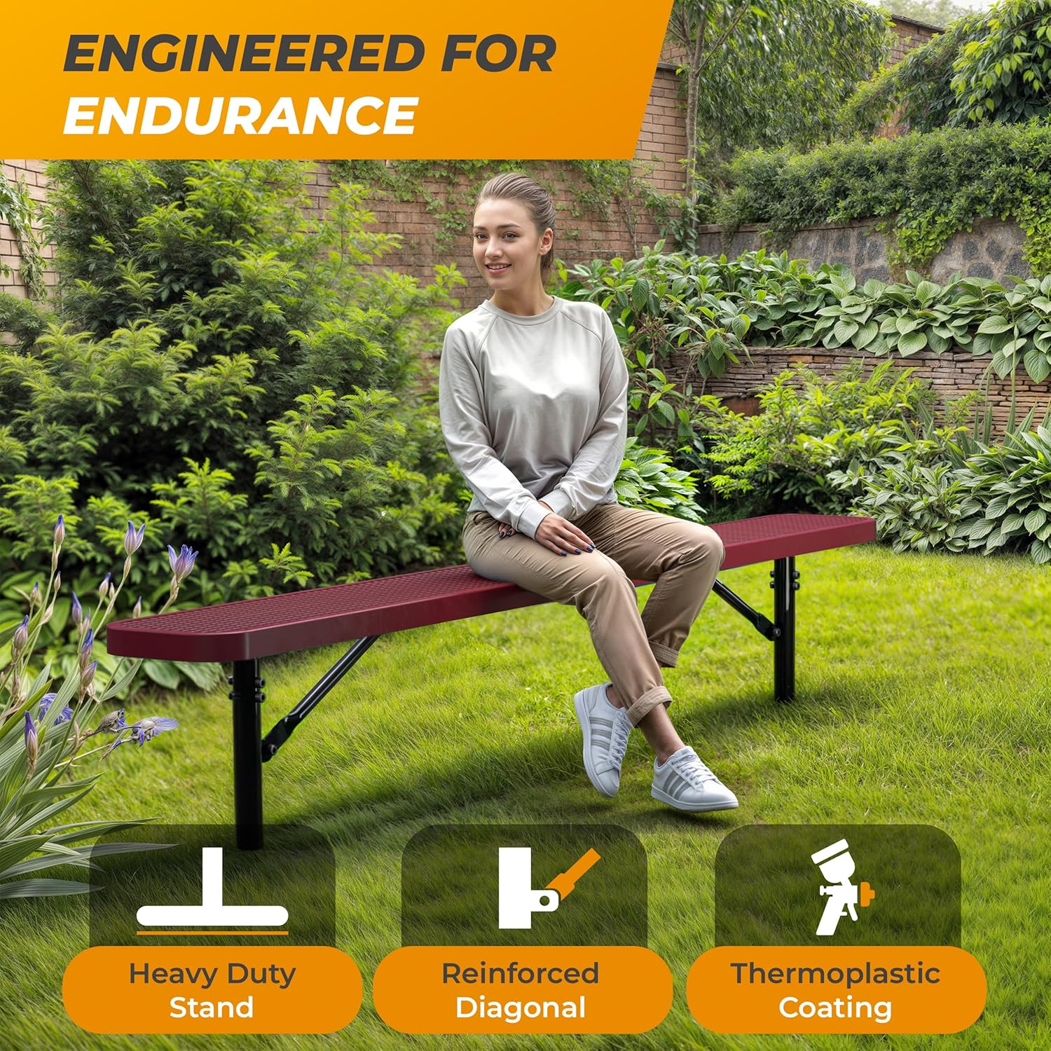 - Weather-Resistant & Easy to Maintain: Commercial-grade steel with thermoplastic coating, black powder finish, diagonal reinforcement bars, and industrial legs resists rust, corrosion, and UV damage year-round.
