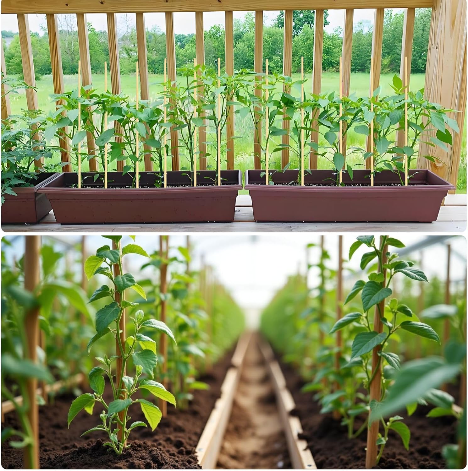 - [Extra Thick 6.3mm Design – Strong and Durable] -- These 17.5" bamboo stakes are 6.3mm thick, offering superior strength compared to standard 5mm stakes. They resist bending and breaking, making them perfect for supporting tomatoes, peppers, flowers, potted plants, and more