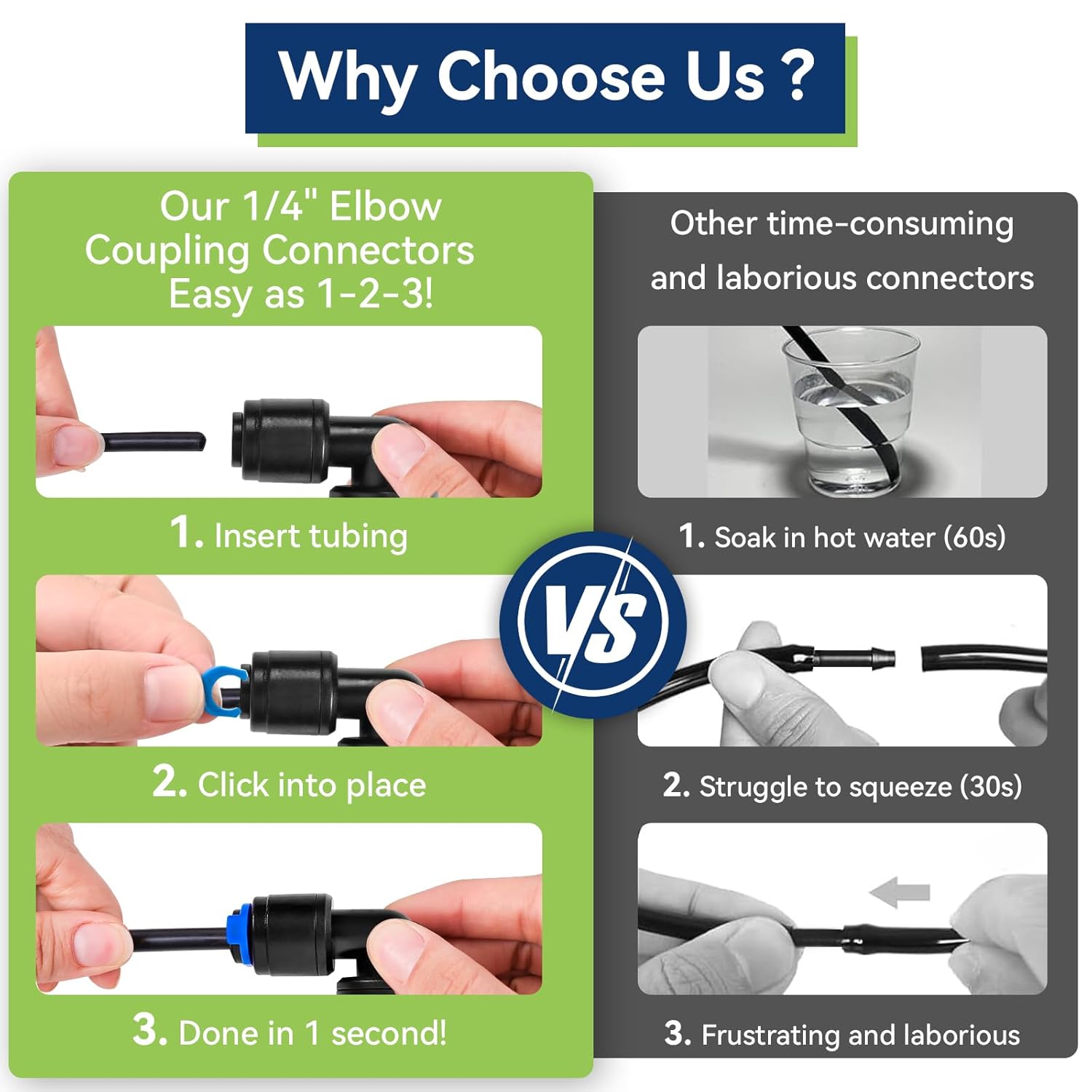 40 Pack 1/4" Universal 90 Degree Elbow Fitting, Quick Connect Universal Drip Irrigation Tubing Coupling Valve, Connector Locking Fitting for Sprinkler or Drip Irrigation System