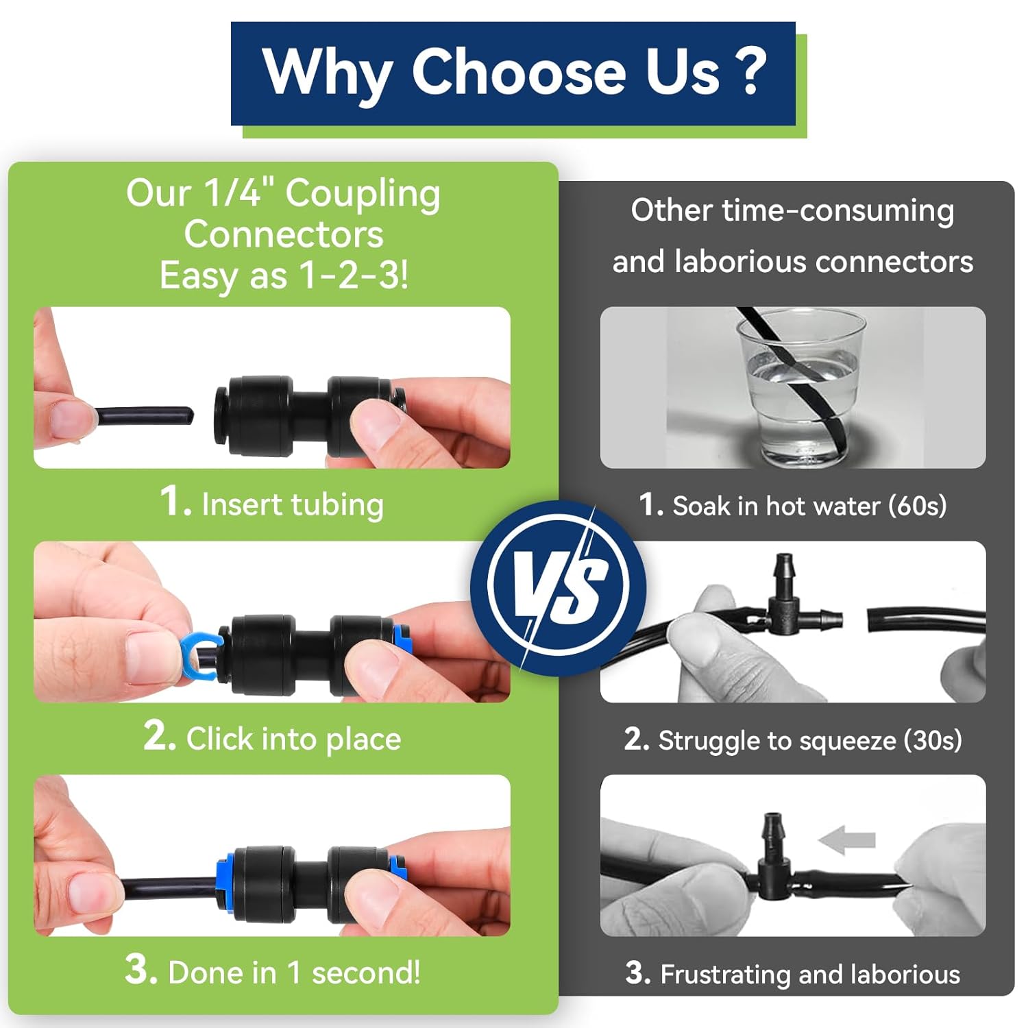 40 Pack 1/4" Drip Universal Straights Fitting Connectors, Quick Connect Universal Drip Irrigation Tubing Coupling Valve, Connector Locking Fitting for Sprinkler or Drip Irrigation System