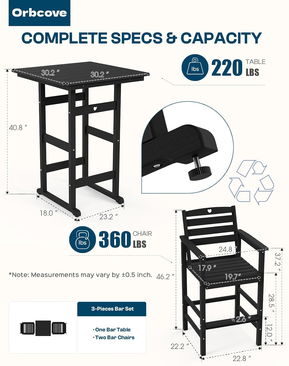 Adirondack Outdoor Bar Table, Durable HDPE Composite, Weather Resistant, Easy to Clean, Perfect for Backyard and Poolside Use, Black