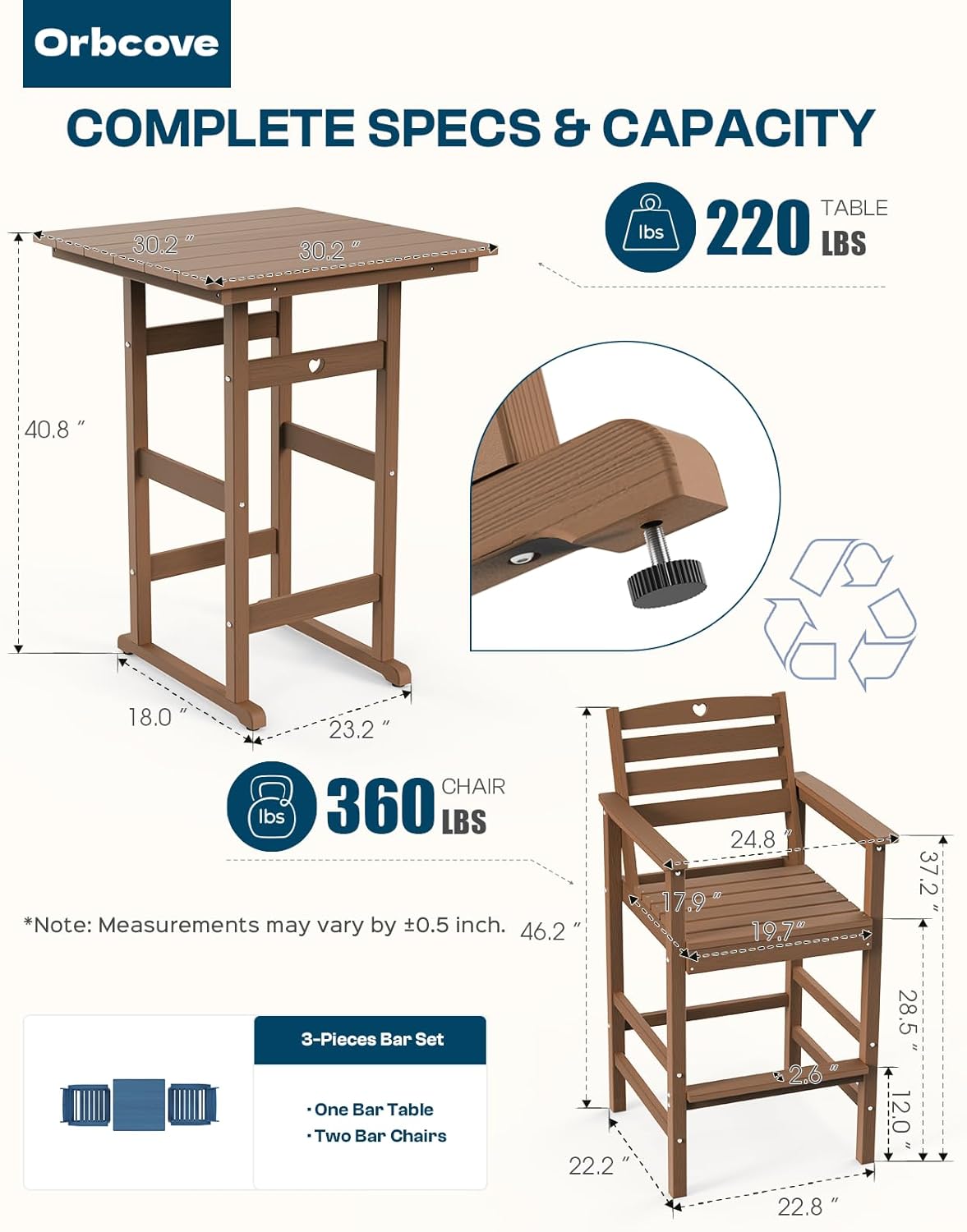 Adirondack Outdoor Bar Table, Durable HDPE Composite, Weather Resistant, Easy to Clean, Perfect for Backyard and Poolside Use, Teak