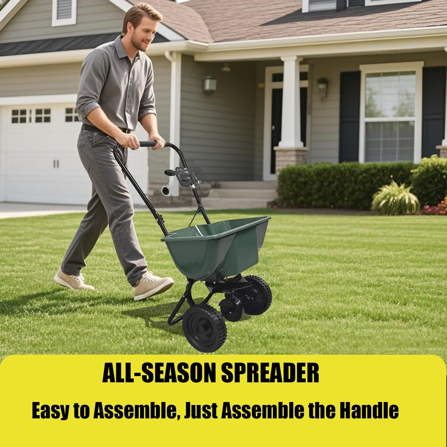80LB Walk-Behind Broadcast Spreader for Seed,Fertilizer,Salt,Ice Melt, Fertilizer Spreader with Adjustable Drop Rate, Seed Spreaders for Lawns