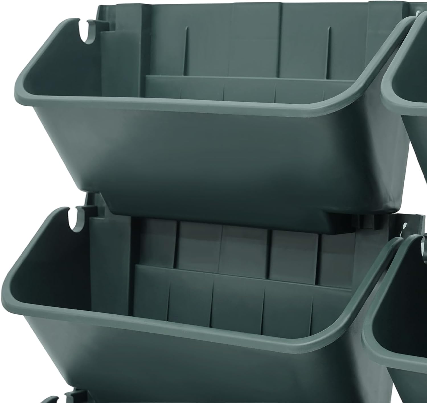 20Pack Vertical Wall Planter, 13 inch Wall Mounted Garden Planters, Stackable Wall Hanging Planter, Plastic Flower Pot with 4 Drainage Tray & 6.56FT Drainage Pipe for Indoor and Outdoor (Green)