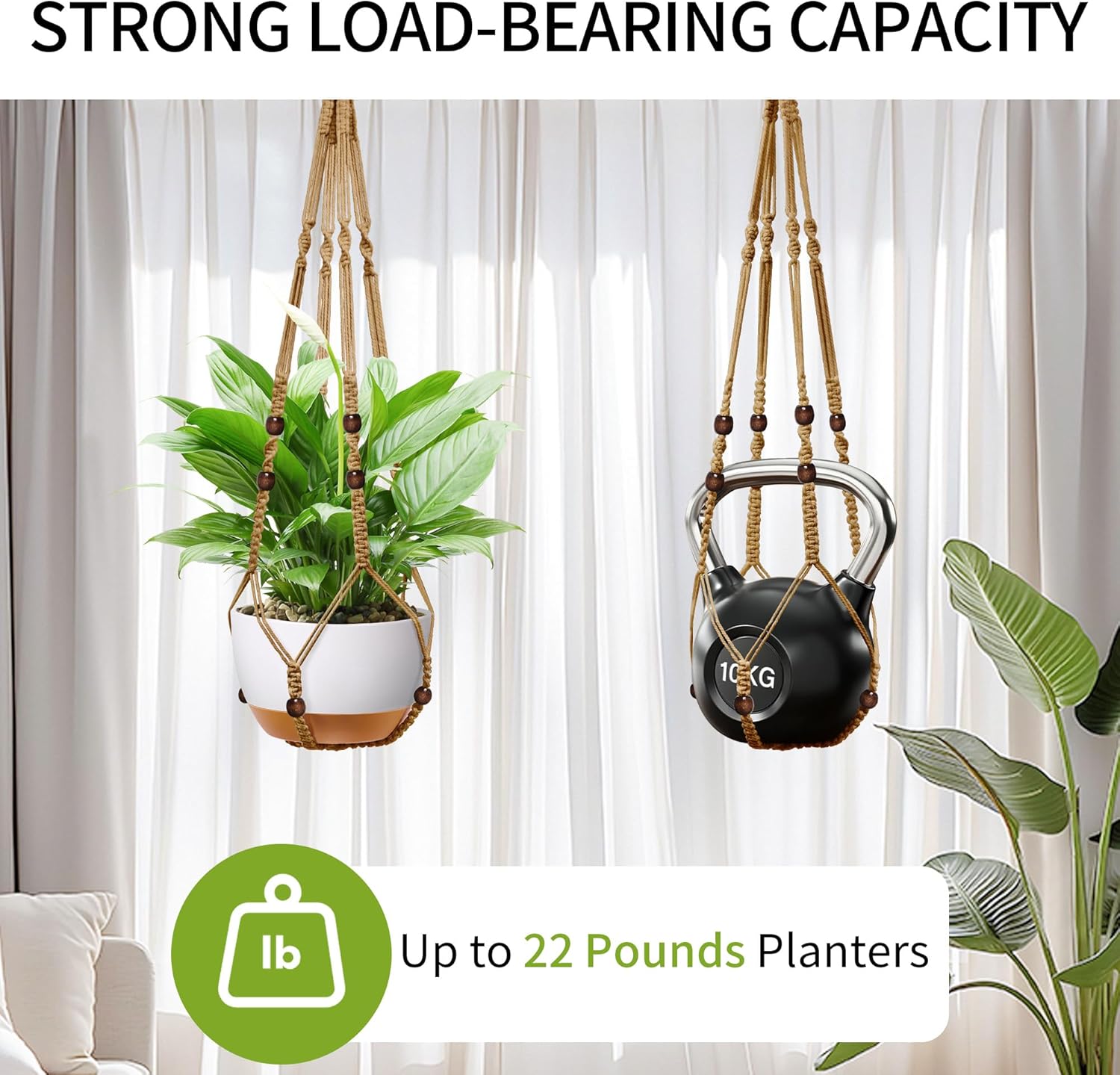 - Handmade for Durability: Crafted from natural cotton rope, this hanging planter is meticulously handwoven for long-lasting strength and support; Fits 4 to 13 inches pots and supports up to 22 lbs, keeping your plants safely suspended without tilting