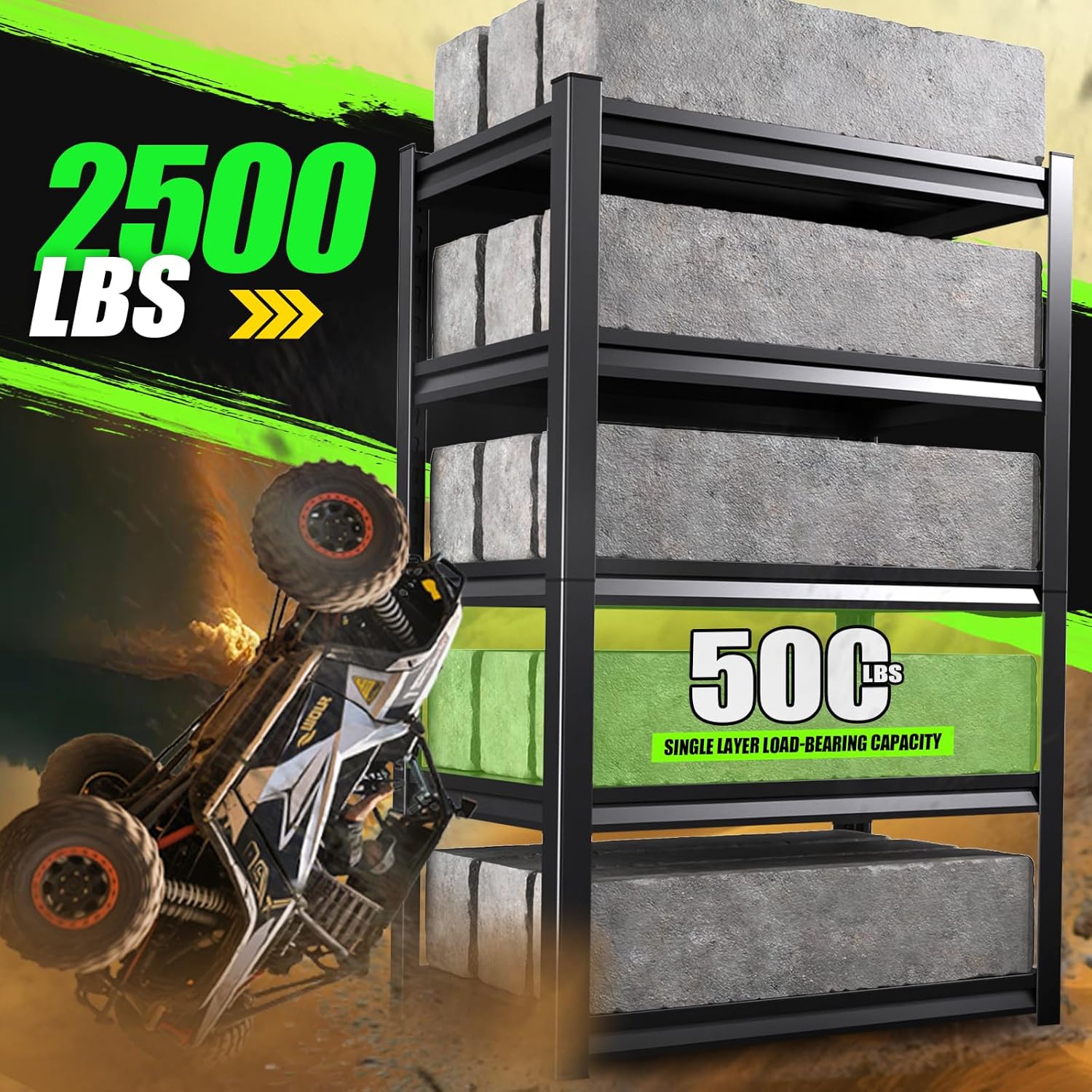 - 1. High-quality metal: Our garage shelving are made of heavy-duty steel and feature a scientific mechanical structure design that evenly distributes load pressure and provides extremely high durability. The double-layer widened columns provide superior stability, eliminating the risk of damage and collapse associated with single-layer designs. The upgraded storage shelves can hold up to 2,000 pounds, allowing you to safely organize all kinds of tools, equipment, and gear.