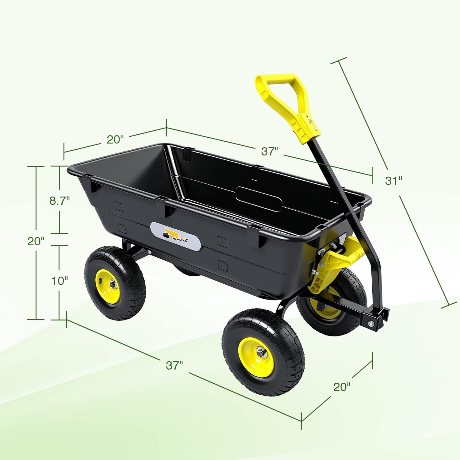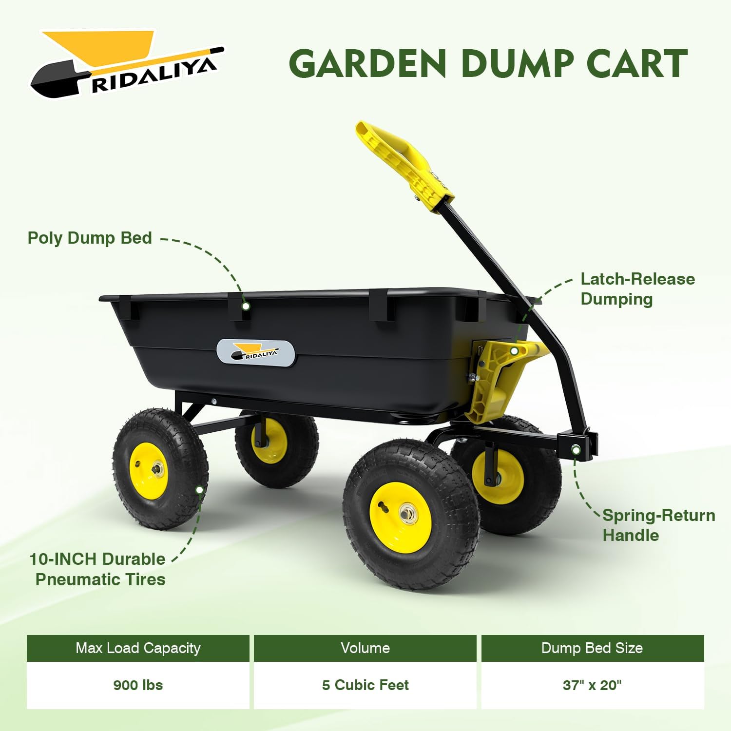 - Built Tough for Bigger Loads: With a sturdy dump bed measuring 37" x 20", this cart offers a reinforced design compared to the 600 lb version, allowing it to carry up to 900 lbs with ease—perfect for heavy-duty outdoor tasks.