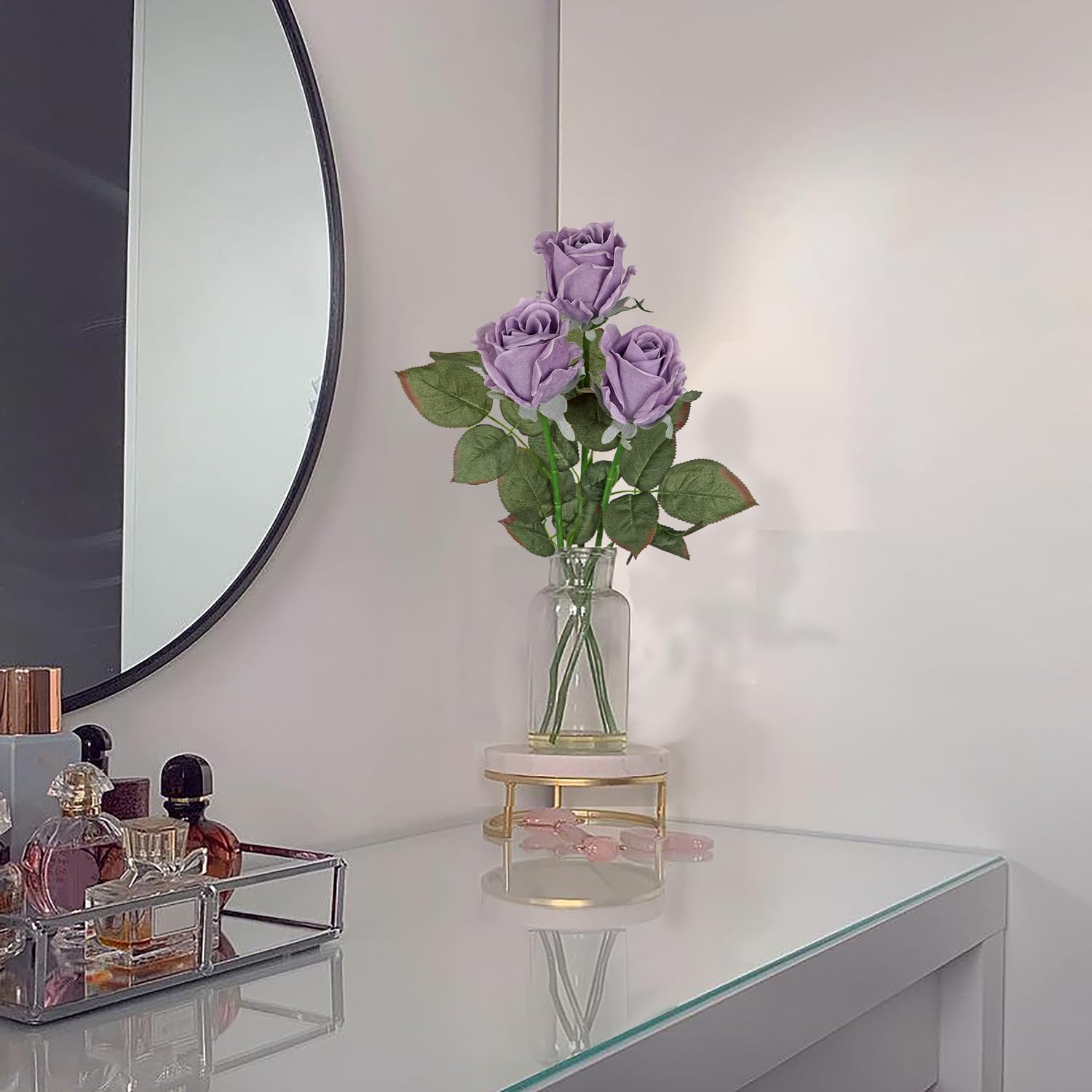 Artificial Realistic Roses Lilac Flowers 24" Real Touch Silk Roses Bouquet Long Stems Rose Fake Roses Decor for Home Party Wedding Table Centerpieces Roses Realistic - 5 Pcs