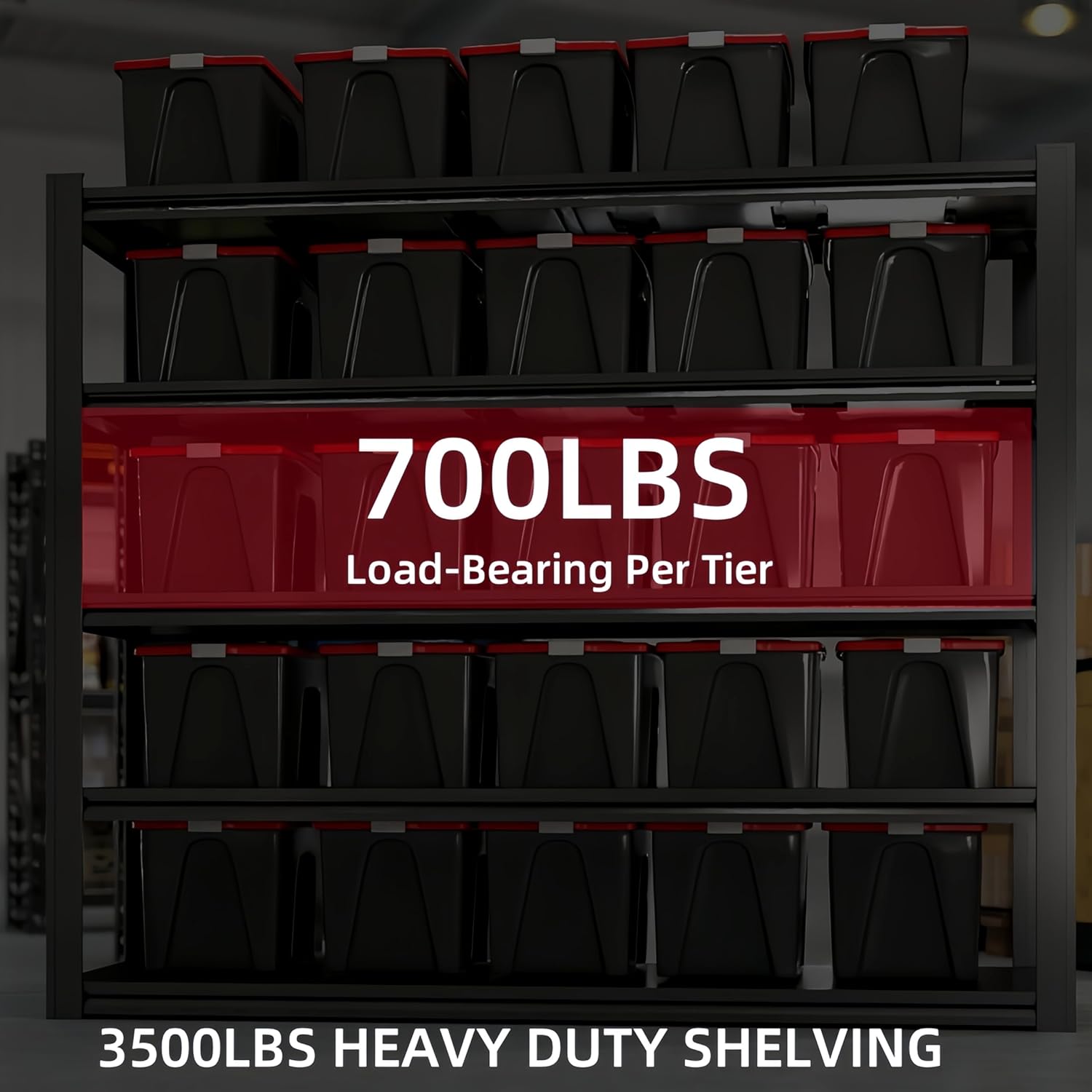 - 【Sturdy and Durable Garage Shelves】Garage shelving is made of premium metal and feature double-thick legs and a rust-resistant coating for added durability.No wobbling or shaking when fully loaded as one-layer vertical support bar will help distribute the pressure and increase the overall stability.The metal shelving will hold your merchandise better and remain stable. This stable storage shelves will serve you for many years and is ideal for storing heavy items