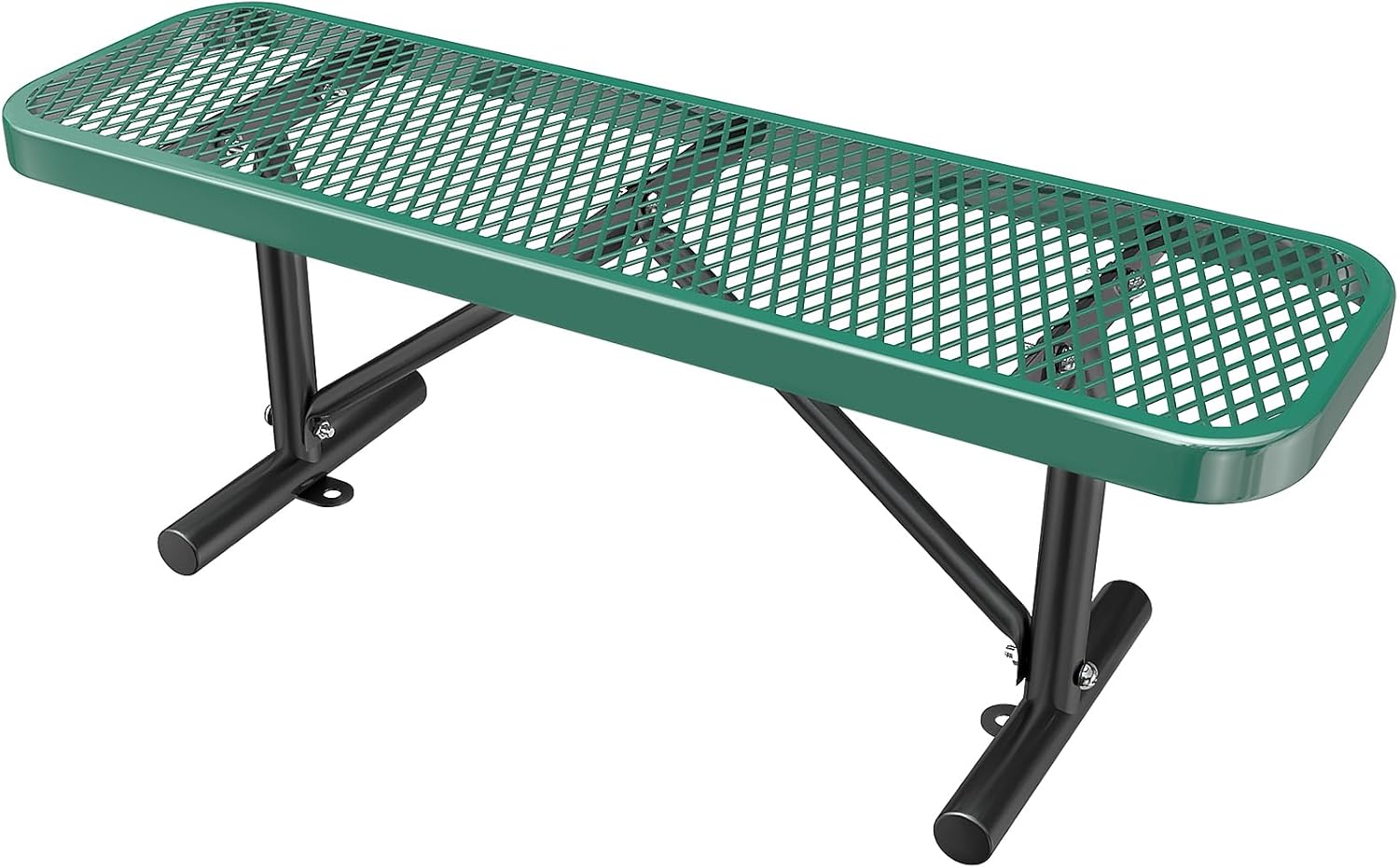 Heavy-Duty Park Bench or Table for Outside - Black Coated Outdoor Furniture Steel Bench, Commercial-Grade Outdoor Benches Weatherproof for Park, Patio, Porch (Green, 4FT (Without Backrest))