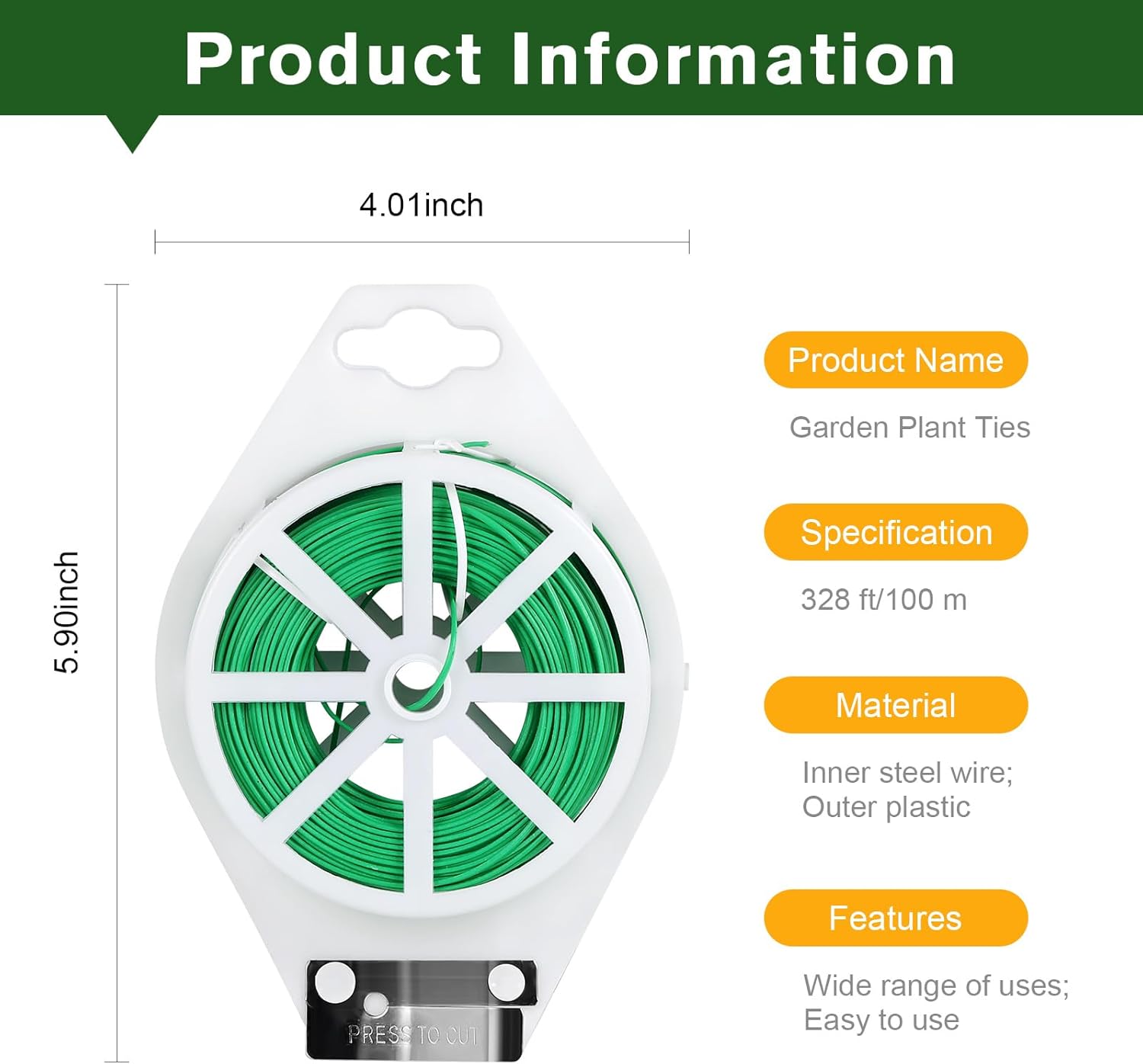 328feet Plant Ties with Cutter, Twist Ties for Tomato Vines and Garden Plants, Adjustable Length Garden Wire for Plants