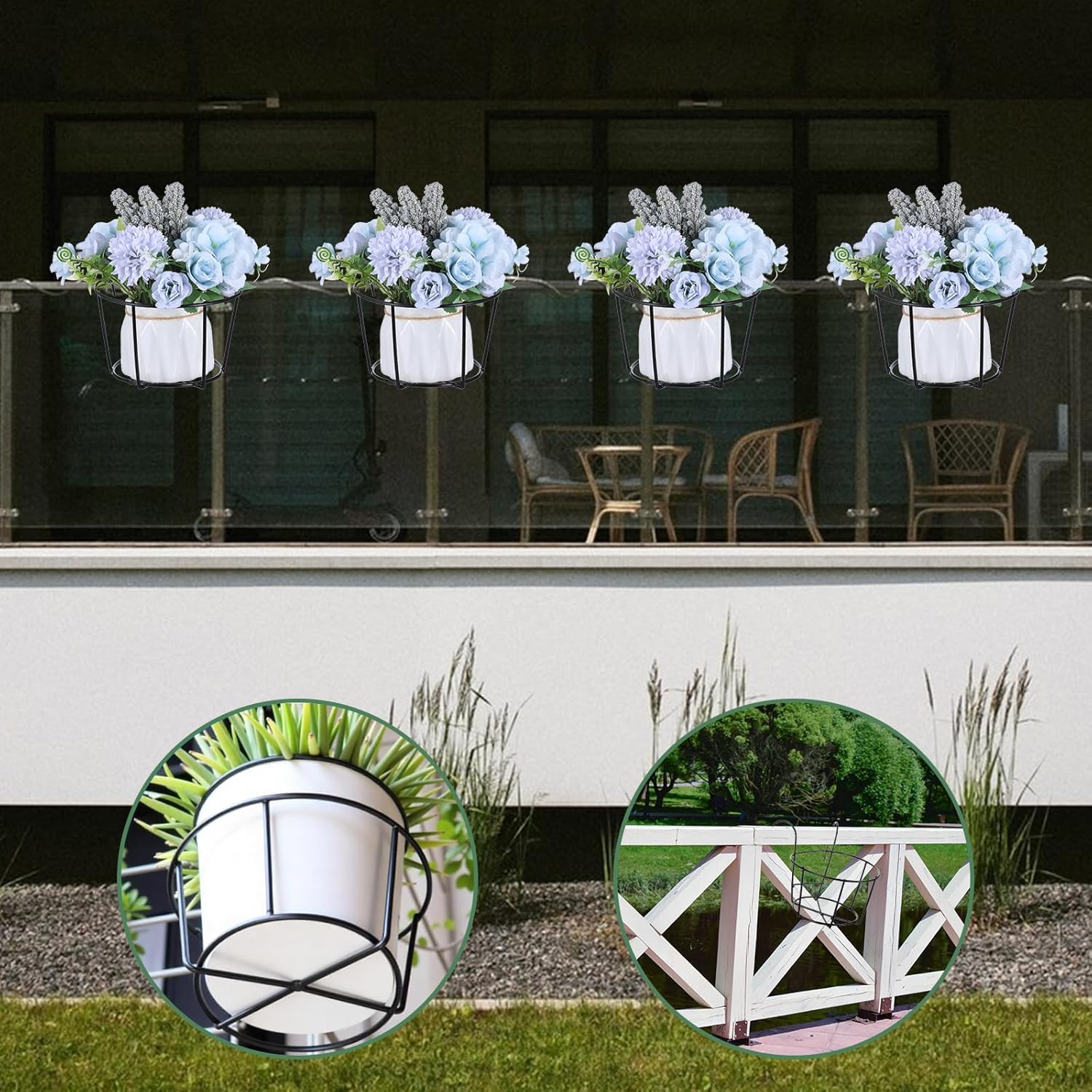 - Versatile Use: Elegant round shape planters for balcony railing suit various spaces like patio, porch, garden, or fence, perfect for air plants, succulents, or decorative flowers.