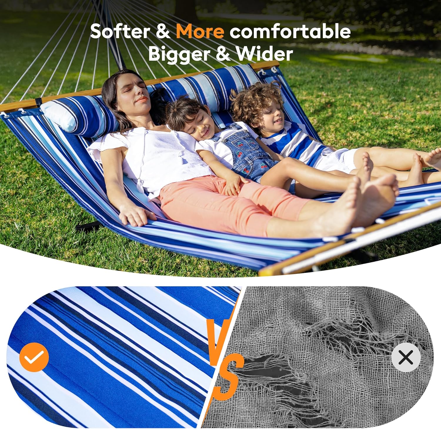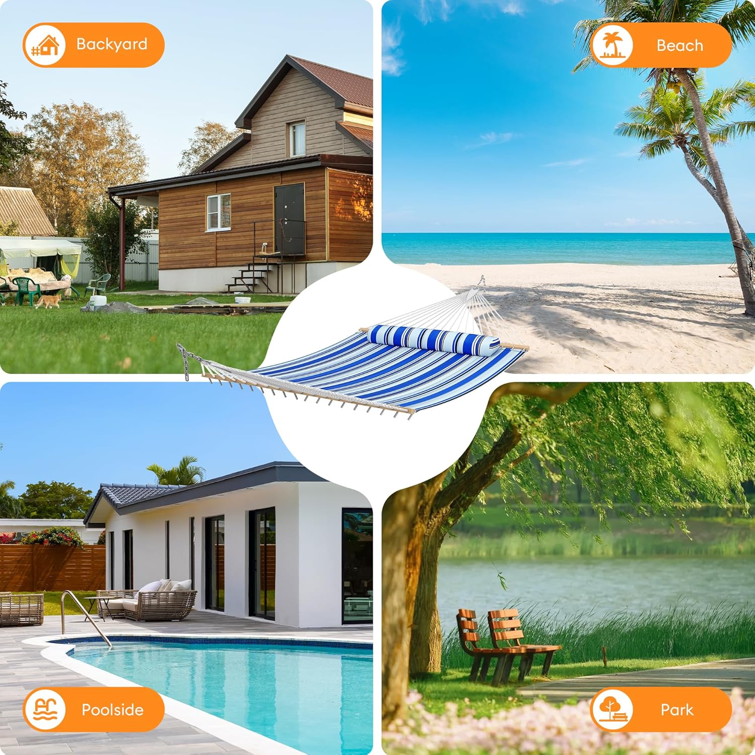 Double Hammock with Spreader Bar,Soft Pillow,Max Load 500lbs,Portable Hammock for Outdoor,Camping,and Backyard,Aqua Blue