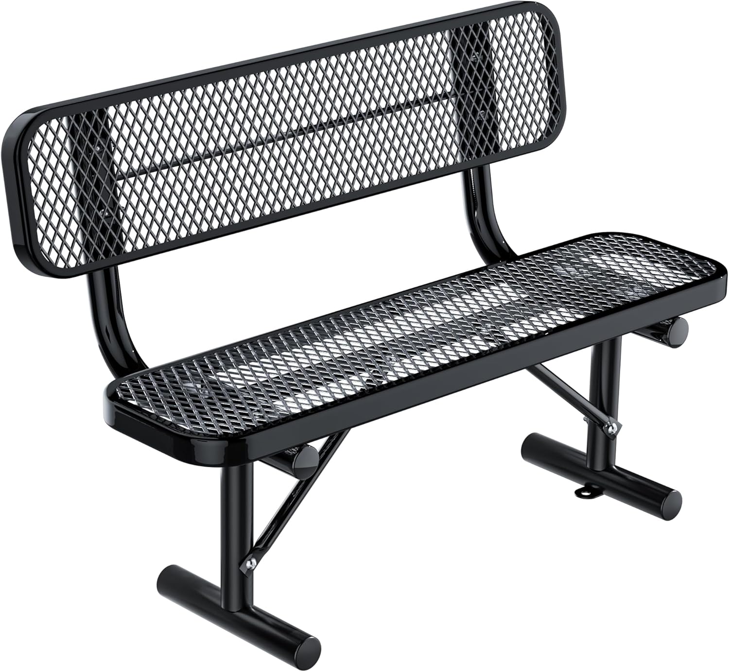 Drexo 4FT Heavy Duty Park Bench with Back Portable Frame, Outdoor Metal Park Bench with Backrest, Steel Mesh Outdoor Bench for Garden, Lawn, Patio, Porch, Park, Yard, Black