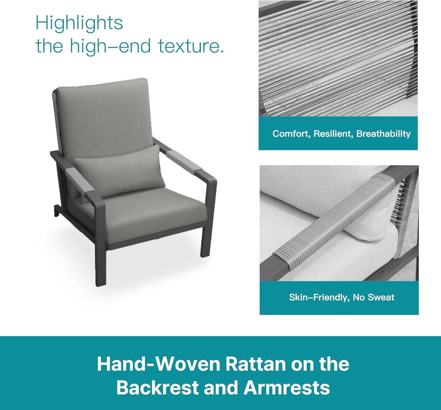 - 【Exceptional Comfort】 This outdoor furniture comes with thick cushions filled with high-density sponge, delivering outstanding support and comfort, with ergonomic design that conforms to the body’s curves for upgraded well-being.