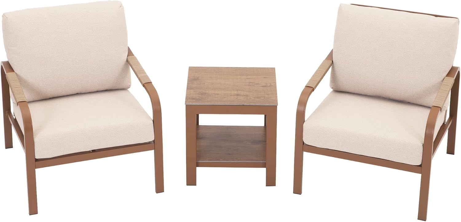 - Enhanced Comfort with Weather-Resistant Fabrics​ The patio bistro set comes with 4-inch thick high-density foam cushions covered in waterproof, fade-resistant polyester. Ergonomic curved backrests offer natural lumbar support, while Velcro fasteners keep cushions in place. Ideal for gatherings or solo relaxation, it balances softness and support for all-day comfort.​