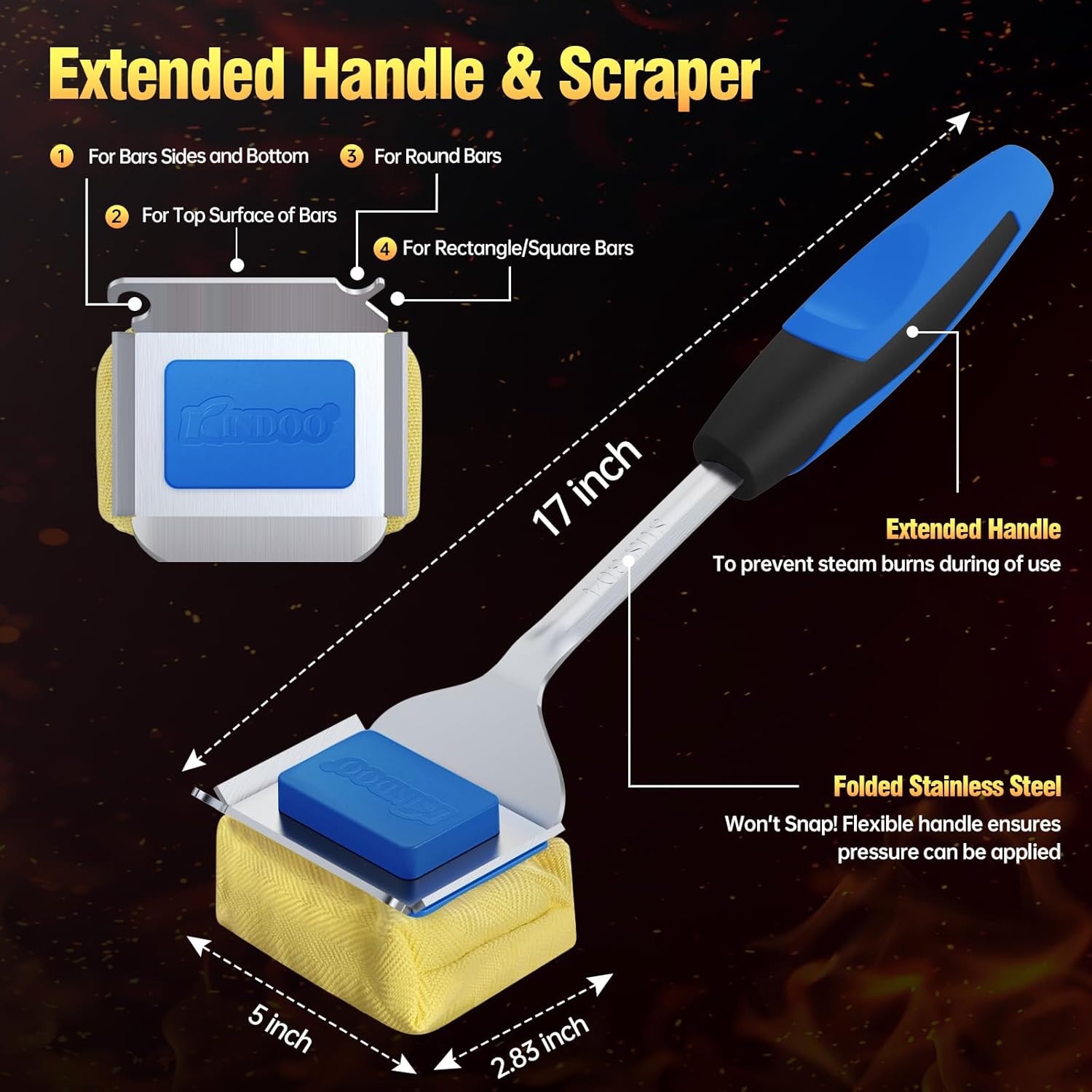 - 【Heat Resistance & Stronger Friction】The BBQ grill cleaner brush head fabric is made of high-quality Aramid for excellent abrasion resistance and superb heat resistance.The unique design of the Herringbone pattern provides stronger friction.This is the ideal barbecue brush tool designed to remove stubborn, sticky grill residue, ensuring efficient and thorough cleaning every time