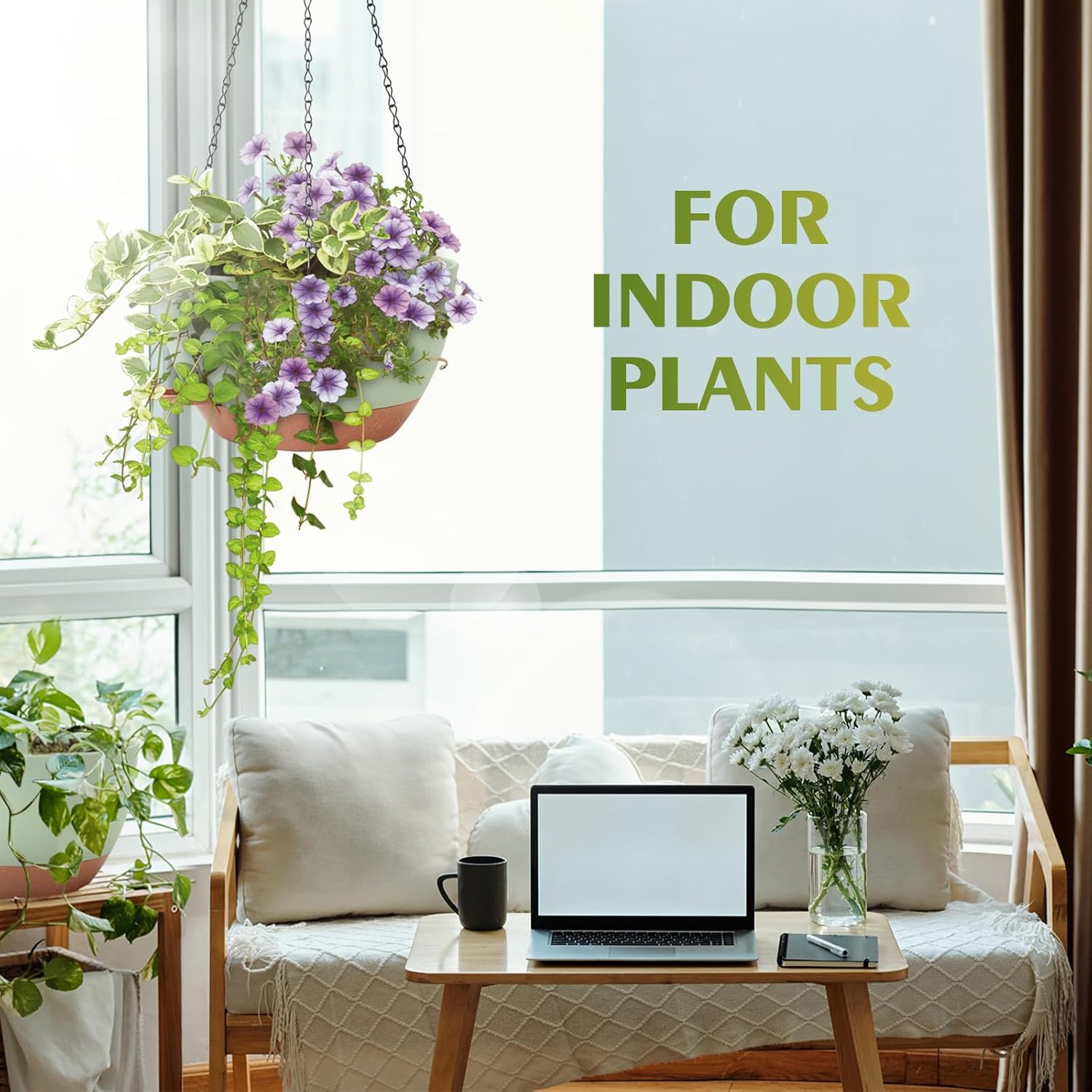 - 【Self-Watering Hanging Flower Pots with Removable Saucer】The innovative recessed design under each hanging indoor planter maintains optimal water levels for your plants and serves as a reservoir for consistent watering. This feature eliminates the hassle of watering plants while you're away on business trips or traveling, thanks to our hanging plant pot.