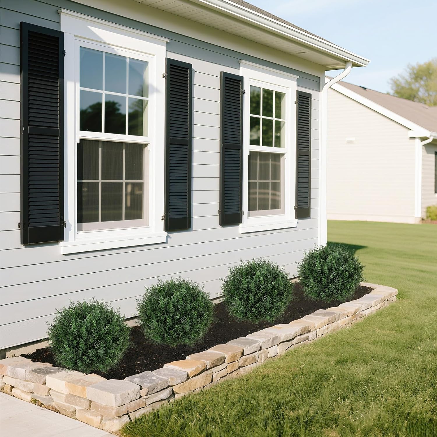- [Hassle-Free Greenery] The artificial outdoor plants stays lush and tidy with minimal effort—unlike real trees that require constant watering, pruning, and cleaning up fallen leaves. No bugs, no wilting, and no seasonal mess. Whether you're decorating a vacation home or simply want year-round greenery without the hassle, the fake bushes offer all the beauty of nature—without the chore.