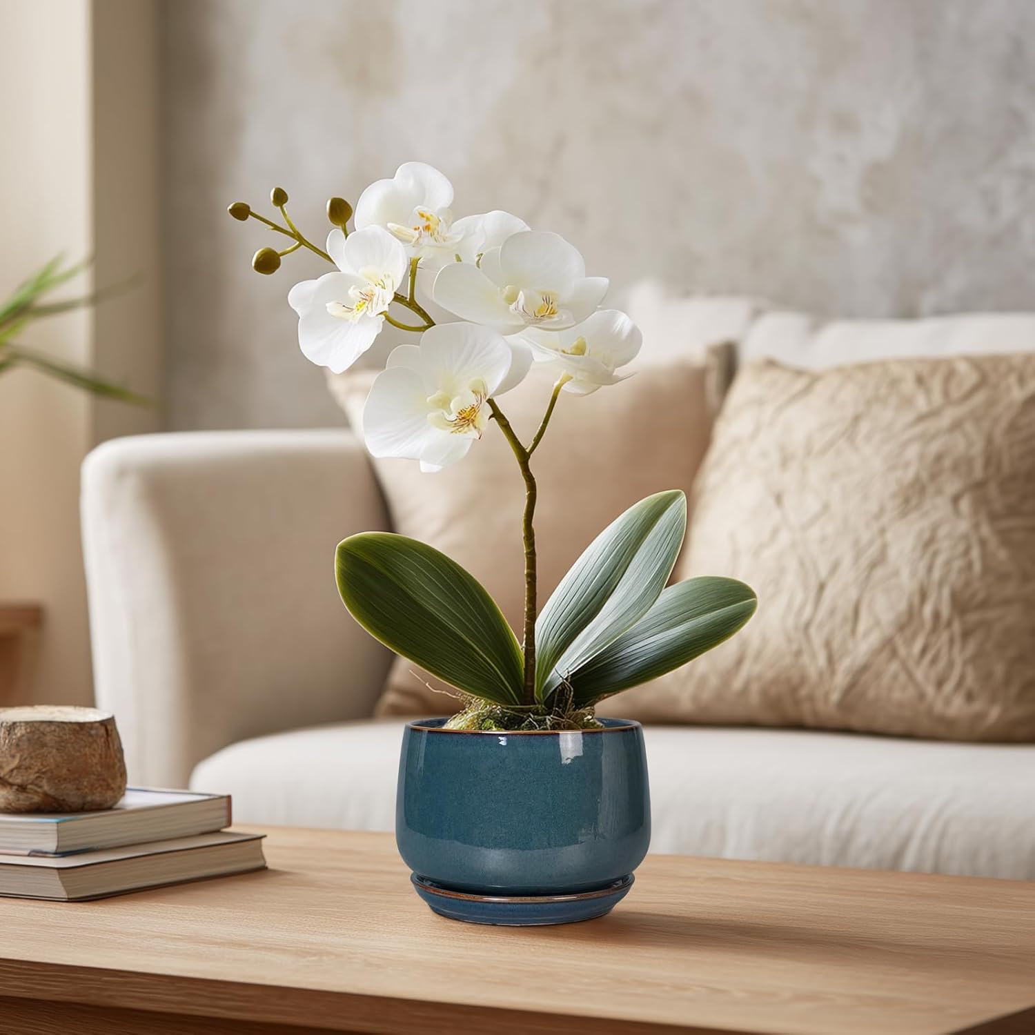 - Dimensions: The waist diameter of these ceramic plant pots is 4.4"/ 11.3cm, the external caliber is 4.0"/ 10.3cm, the height is 3.5"/ 9.0cm. This blue planter is an ideal choice for growing succulent plants, cacti, aloe vera, orchids, snake plant, african violet, mint, rosemary, herbs, and other indoor & outdoor plants