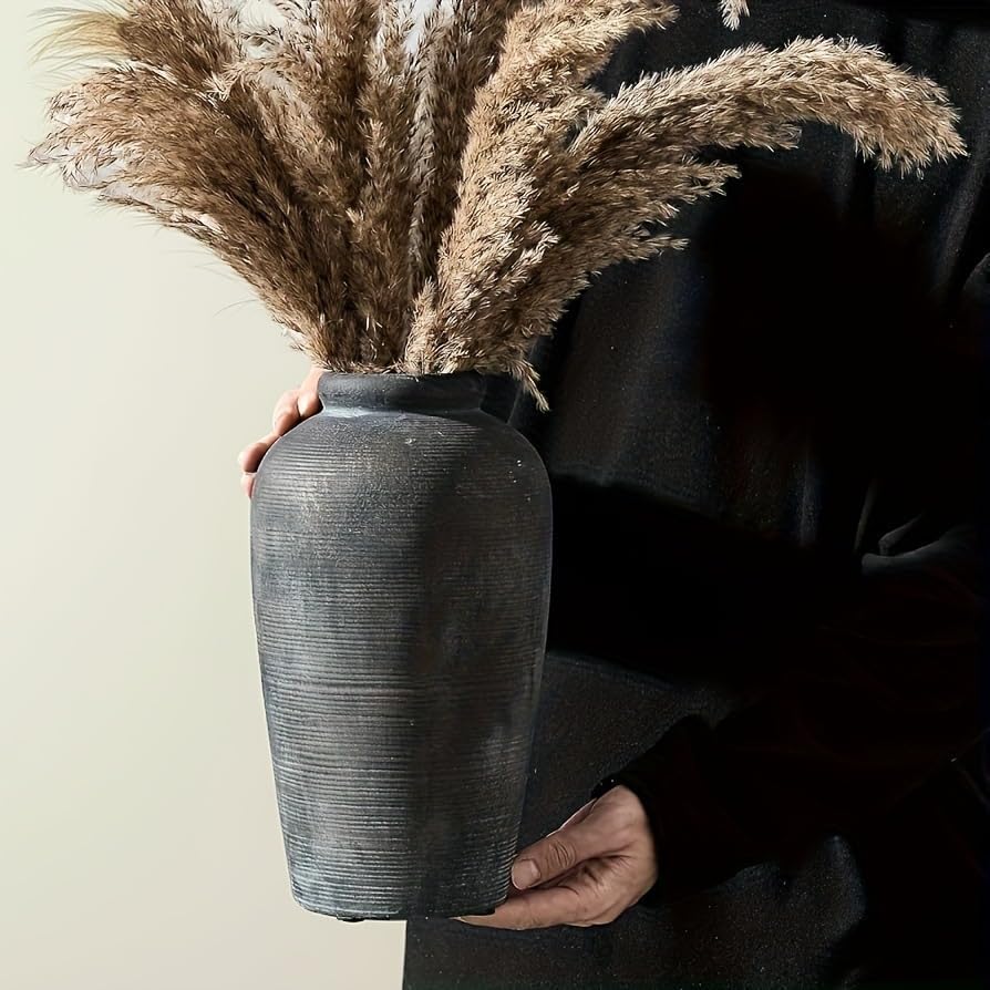 - LARGE DECORATIVE VASE**: 28cm (11") tall x 16cm (6") wide – perfect as a **statement centerpiece** for tables, mantels, or entryways. Holds tall dried pampas grass, eucalyptus, or sunflowers effortlessly.