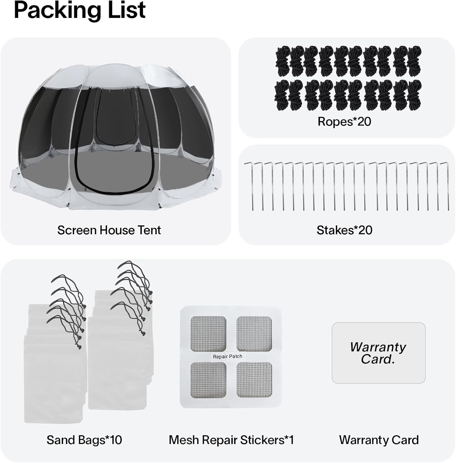 - ☀Great choice for outdoor life: set up this screen house tent in the backyards, have a great time with your friends or families. Take it when you go camping, compact carry bag make it easy to put in the back of your car, easy set up when you need a rest, have a cup of coffee and enjoy the beautiful scene. NOTICE; please make sure you set up the tent completely, pull the guylines, use the stakes & sandbags etc.