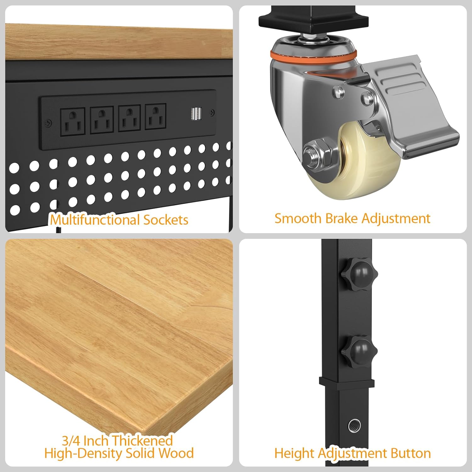 70" Adjustable Workbench,Heavy-Duty Work Table,3000 LBS Load Capacity Hardwood Workstation Outlets with Power Strips, Drawers and Wheels,for Workshop, Garage