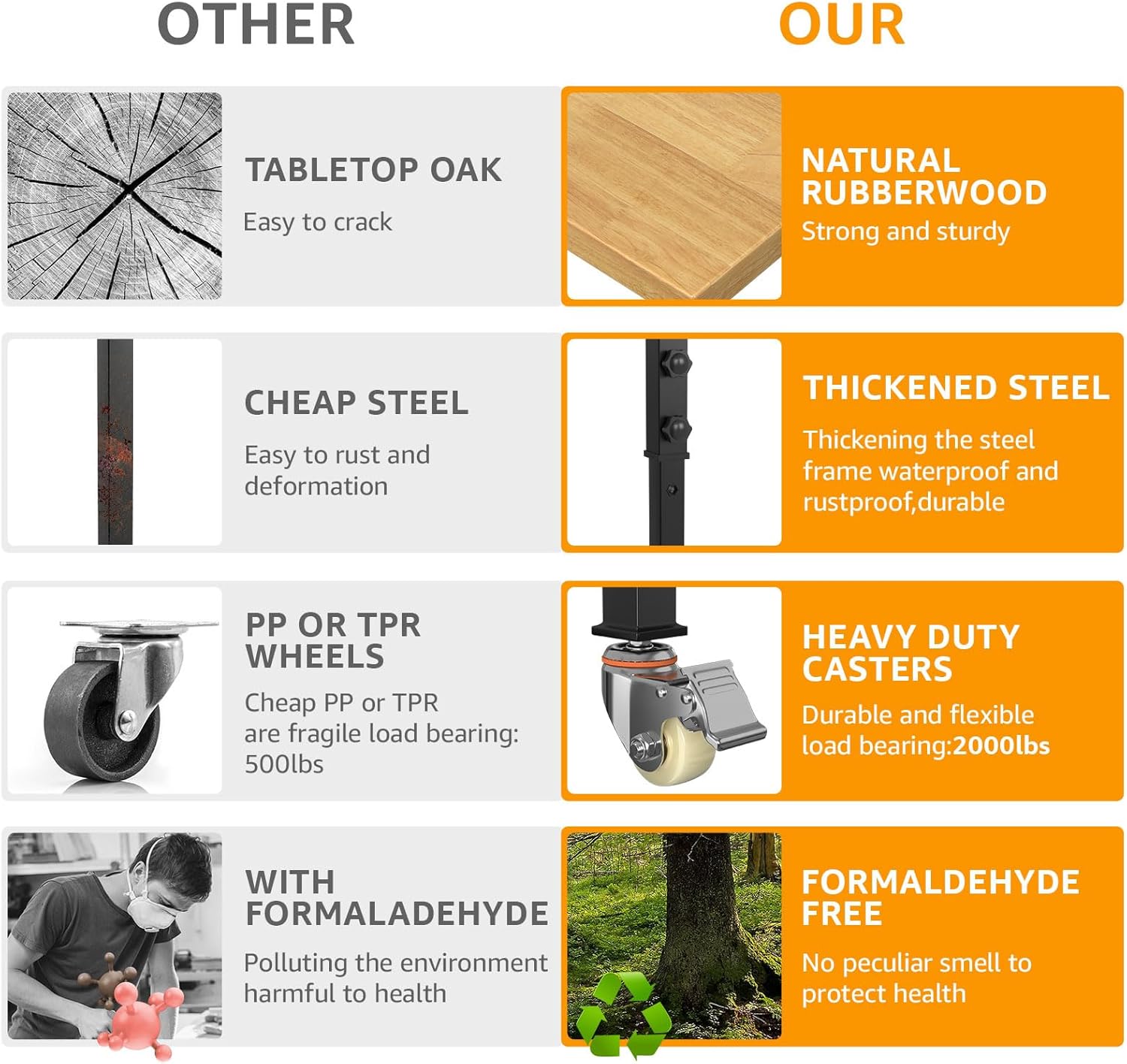 - Stable Construction&Convenient to move:The frame of the work table is made of cold-rolled steel plates, which are very sturdy.Several thick crossbars keep the table stable when loaded. With four heavy-duty 360° locking casters, moving becomes effortless, providing mobility for your workstation anywhere.Moreover, all accessories, required tools, and detailed installation instructions are included, making it easy to assemble the heavy-duty workbench.