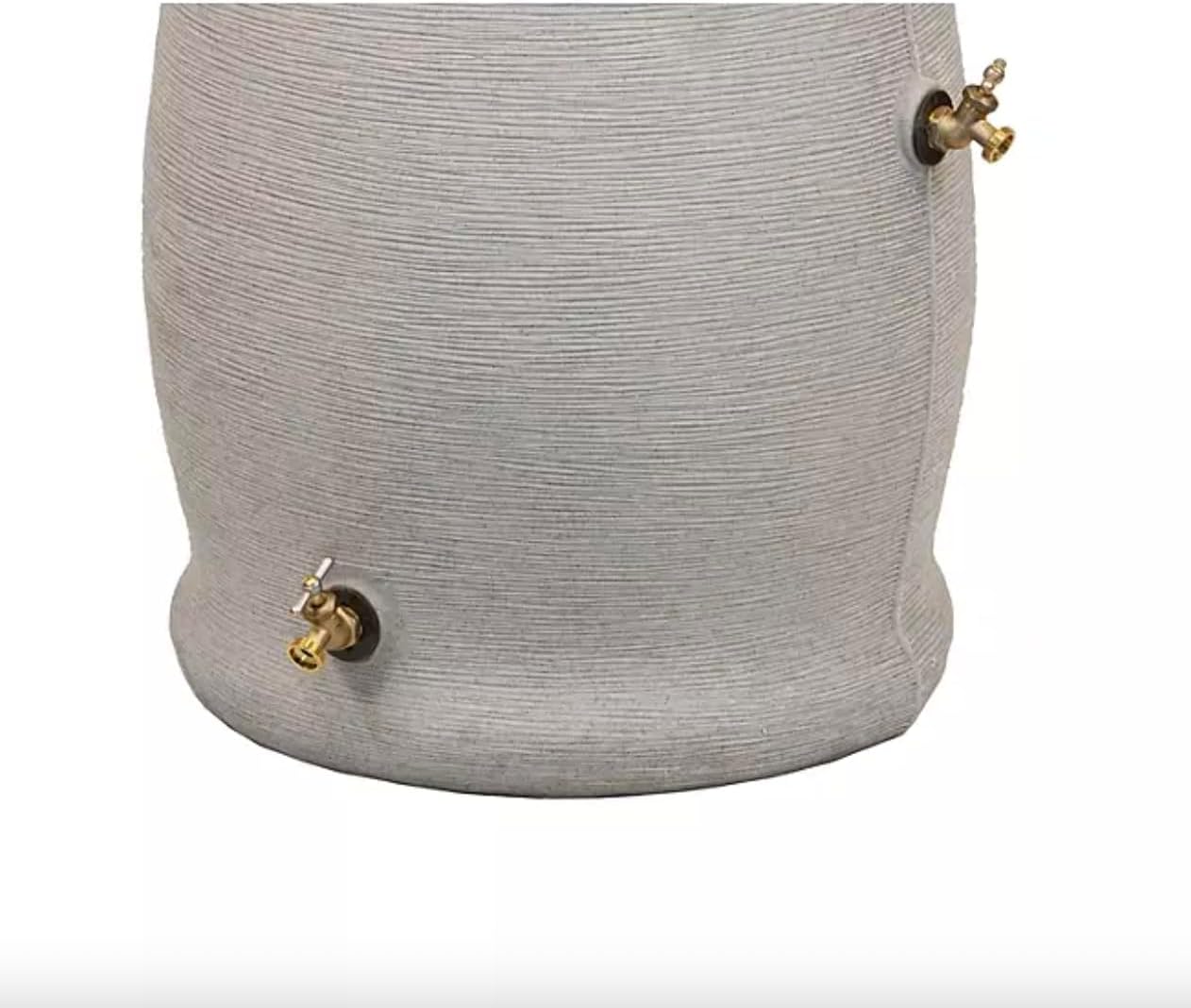 50-Gallon Impressions Corsican Rain Barrel with Diverter Kit, Light Gray Textured Finish, Dual Brass Spigots, Downspout Connection