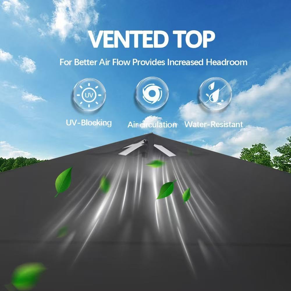 - 【Spacious Shade for 8–10 People】Give your group room to relax. The 10x10ft canopy provides 100 sq ft of coverage, 9ft peak height, and folds down to a compact 48"x8.3"x8.4" size. Whether it’s a family BBQ or a game-day party, stay cool and connected—without crowding.
