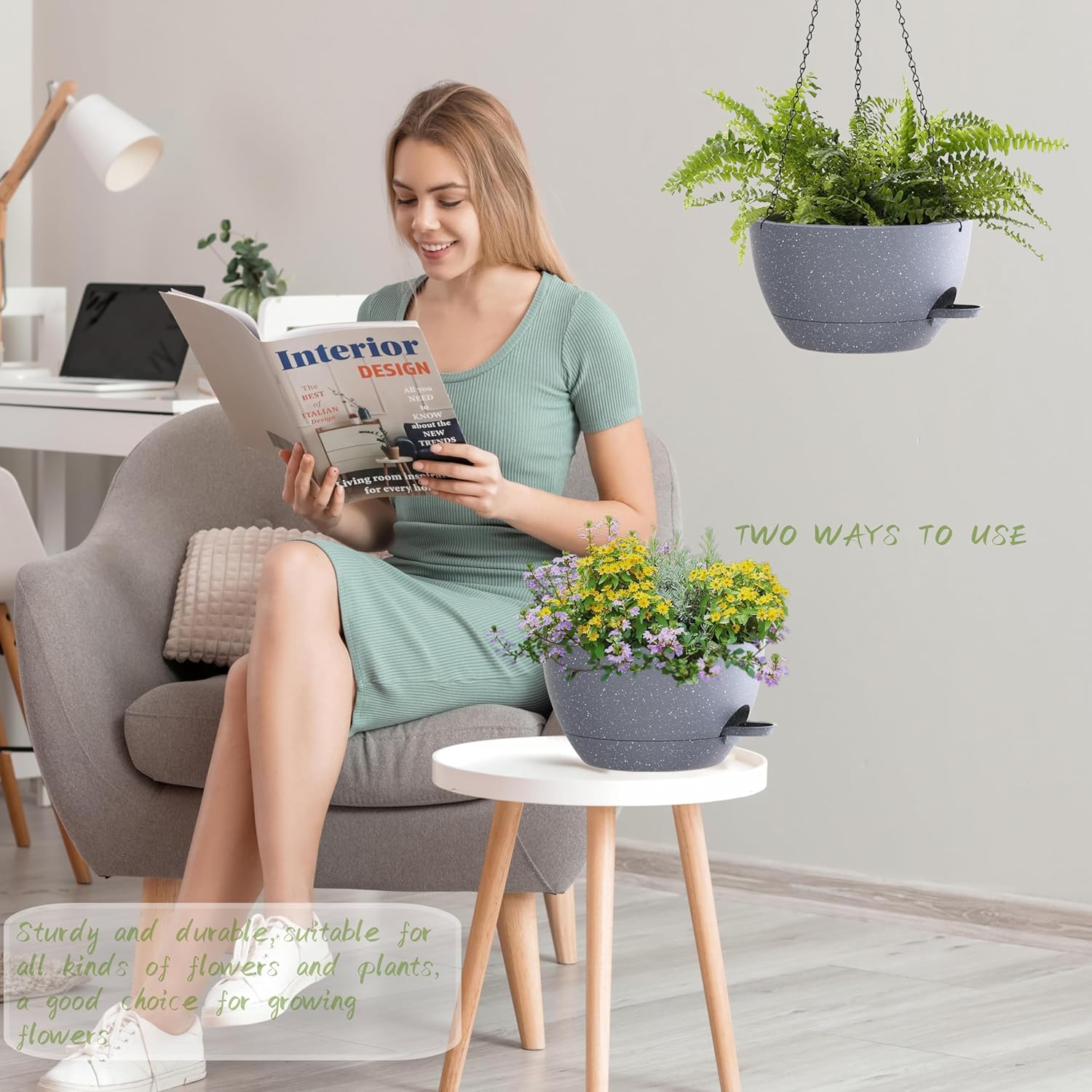 - 【Minimalist Modern Design】Trendy Colors and a Modern look allow this decorative Pot to fit into any Indoor and Outdoor setting. these 12" Hanging Pots offer generous space for your greenery. Good for creating eye-catching botanical arrangements