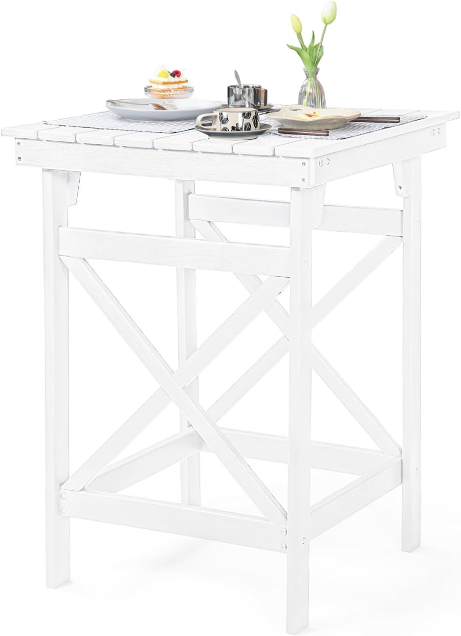 - X-Leg Design for Strength and Style: Built with signature X-shaped legs and secured by rustproof 304 stainless steel screws, this square bar table stands firm on decks, pavers, or stone tiles. The sturdy 30"L x 30"W x 41"H frame comes in a single package for easy placement. A balanced mix of form and function for outdoor bars, gardens, or terraces.