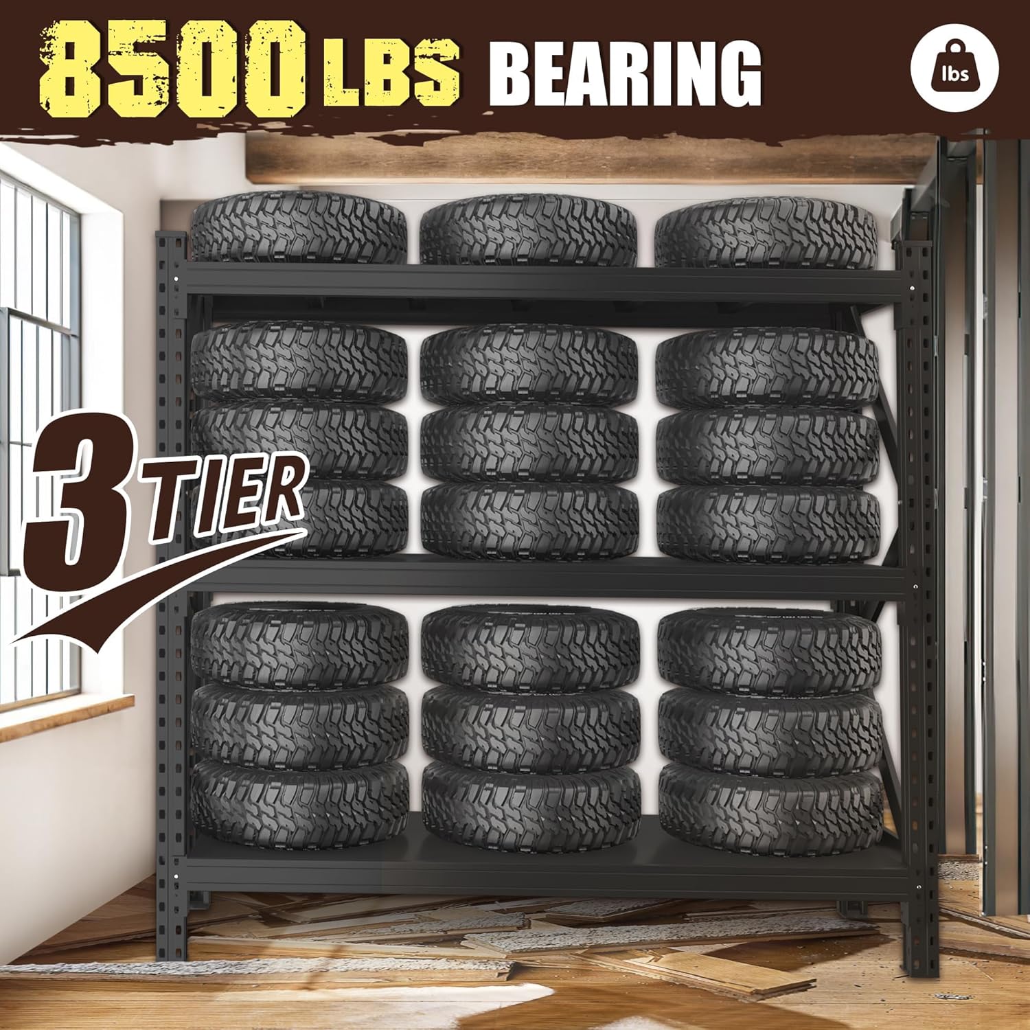 - 【Heavy duty storage shelves】This garage shelving can support up to 4200lbs and is perfect for storing heavy items, including tools, mechanical parts, and bulk storage boxes.