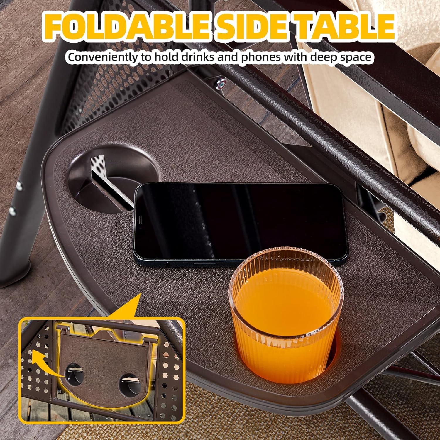 - Convenient Cup Holders & 750 lbs Weight Capacity: Enjoy afternoon tea on your patio swing with canopy! Two cup holders are conveniently placed on each side to keep drinks within reach. Crafted with a heavy-duty steel frame, this patio outdoor swing supports up to 750 lbs, comfortably seating 3 adults — making it the nice outdoor swing for family gatherings
