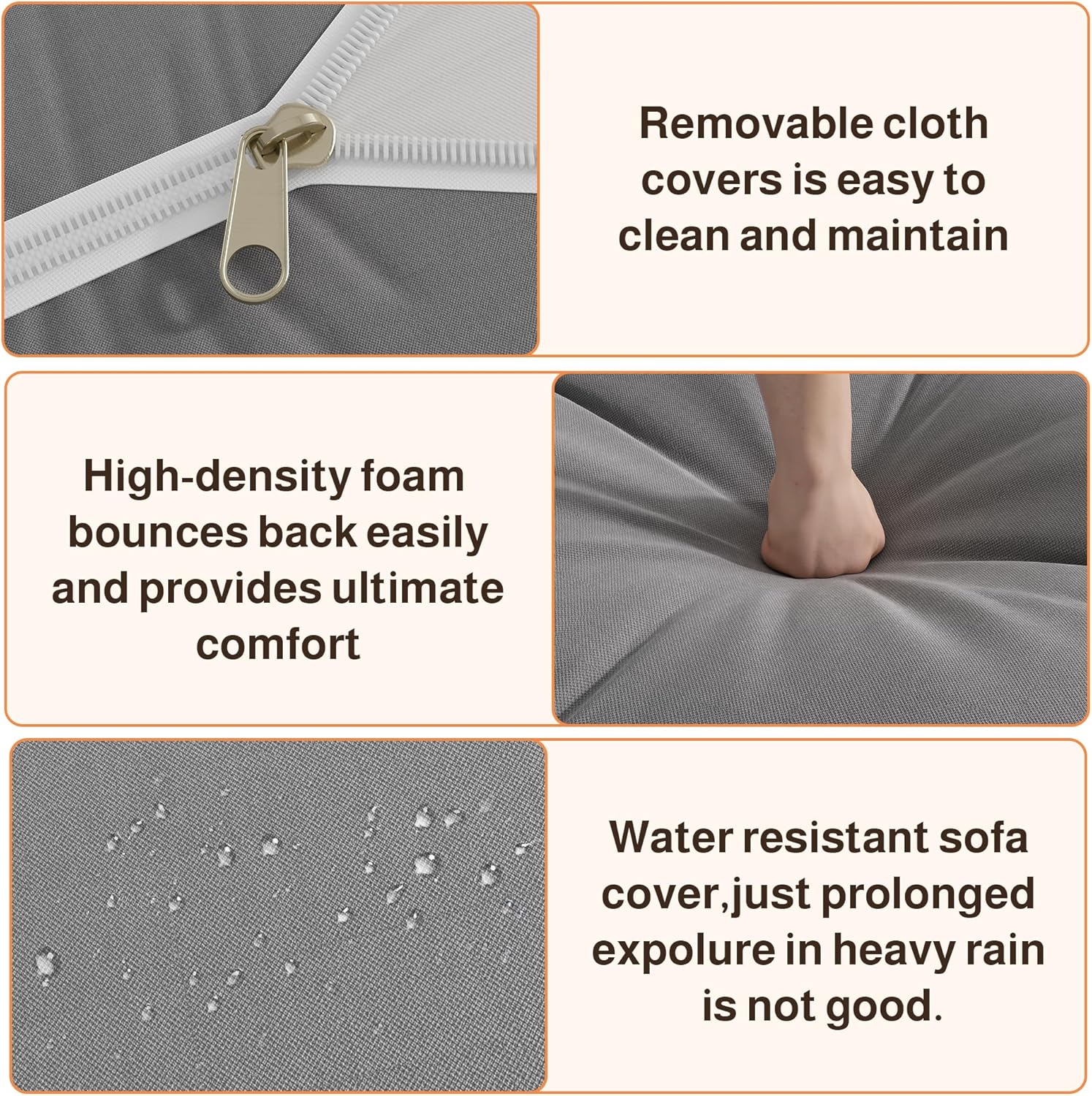 - Plush & Easy-to-Clean Cushions: 4-inch thick cushions deliver enhanced comfort on every seat. The water-resistant covers are removable and machine washable, helping your outdoor patio furniture set stay fresh with regular use.
