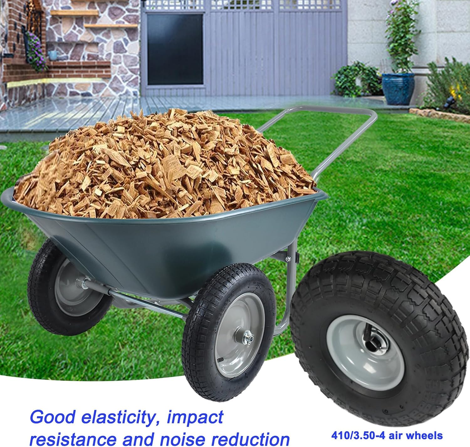 Dual Wheel Wheelbarrow, Heavy Duty Garden Cart, 300 lbs Capacity Utility Cart with Two 15 inches Pneumatic Tires for Outdoor Lawn Yard Farm Ranch (Green)